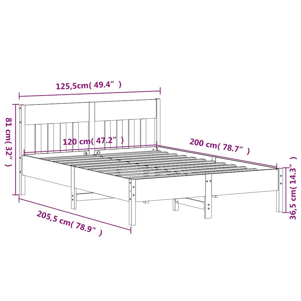 Cadru de pat fara saltea vidaXL, 120x200 cm, lemn masiv pin, 24.5 kg 842650
