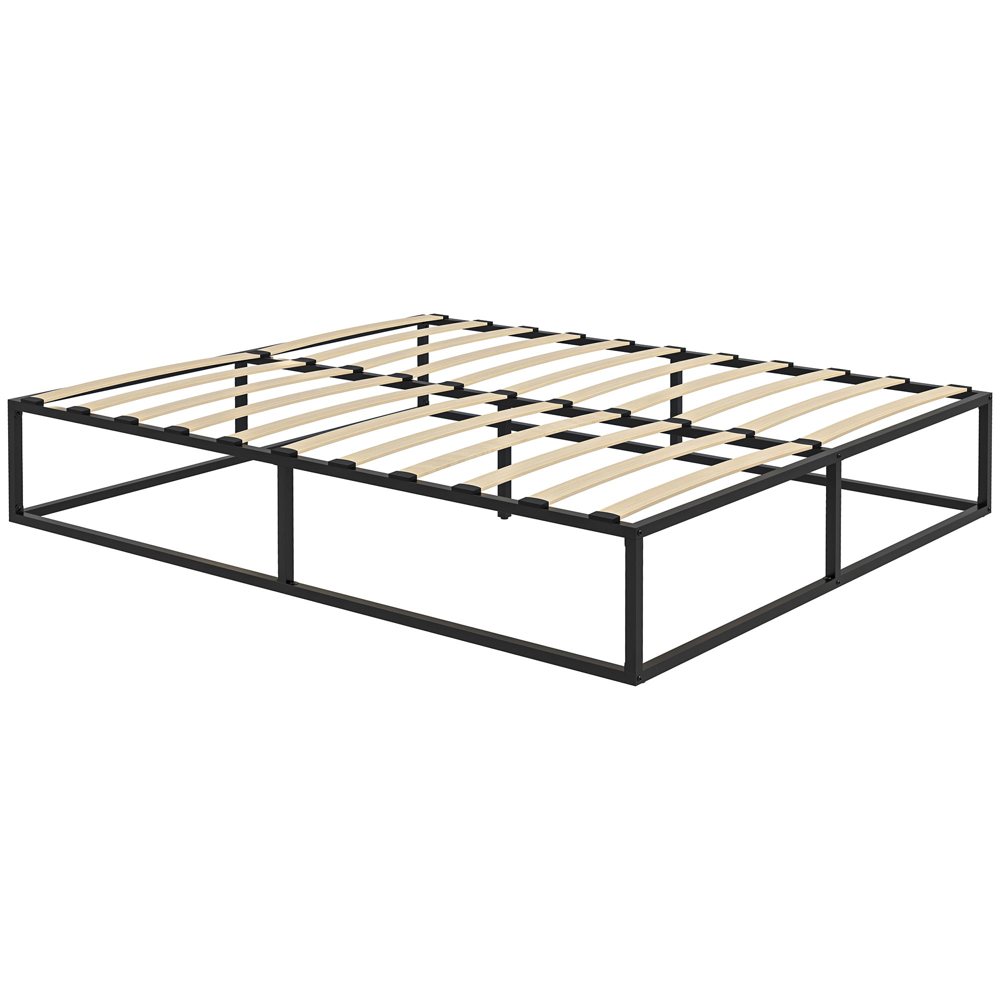 Cadru de pat HOMCOM cu lamele din placaj si container inferior, 190x160x35cm, culoare negru si bej
