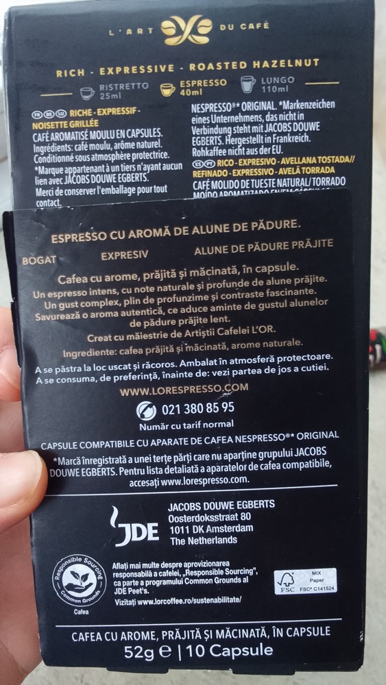 | Destinat pentru | Espressor cu capsule |