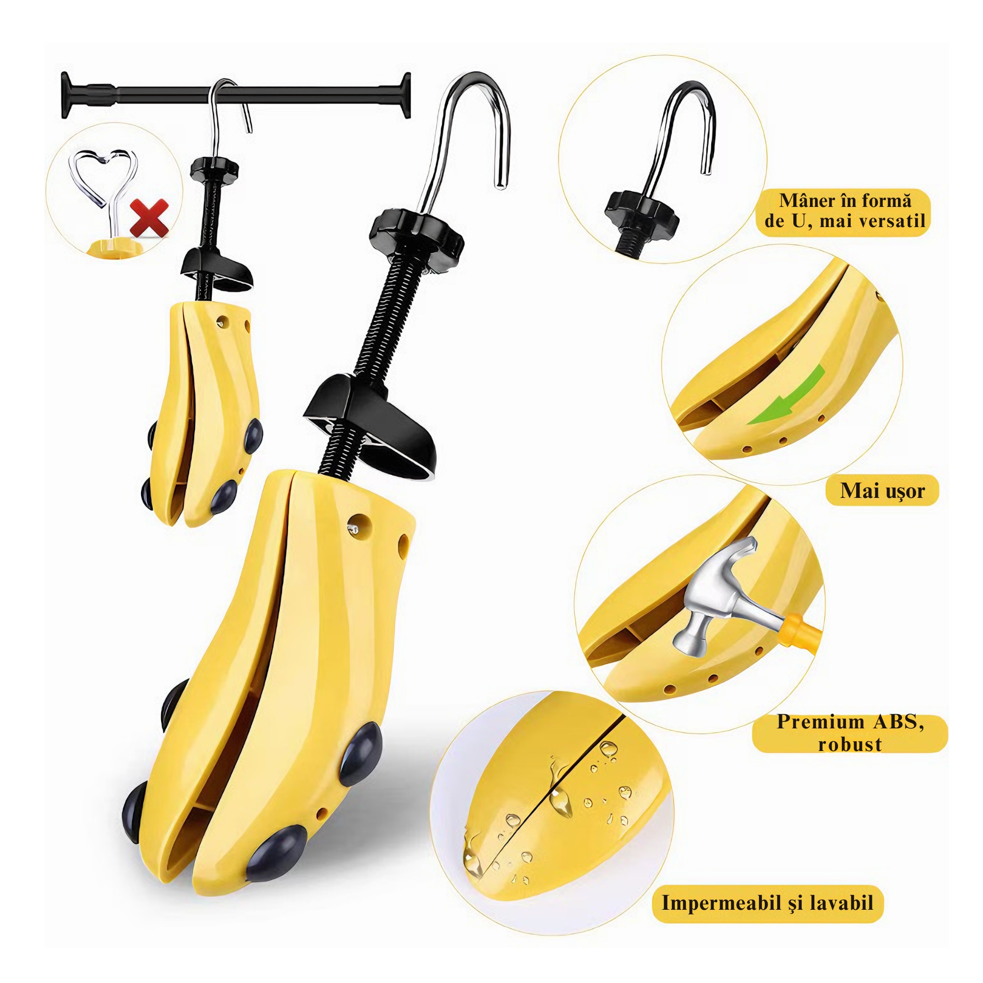 Calapod Reglabil VarioShop® - Marimea 40-47, Pentru Largit si Alungit Pantofi, Universal/Pentru Toate Tipurile de Pantofi si Incaltaminte, Unisex, Calitate Premium, Material Plastic + Cupru Metalic, Galben