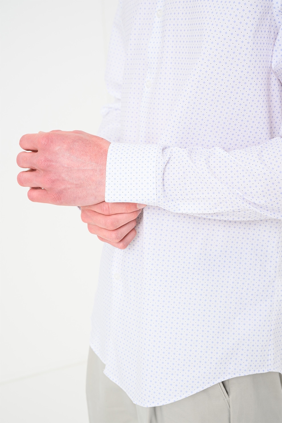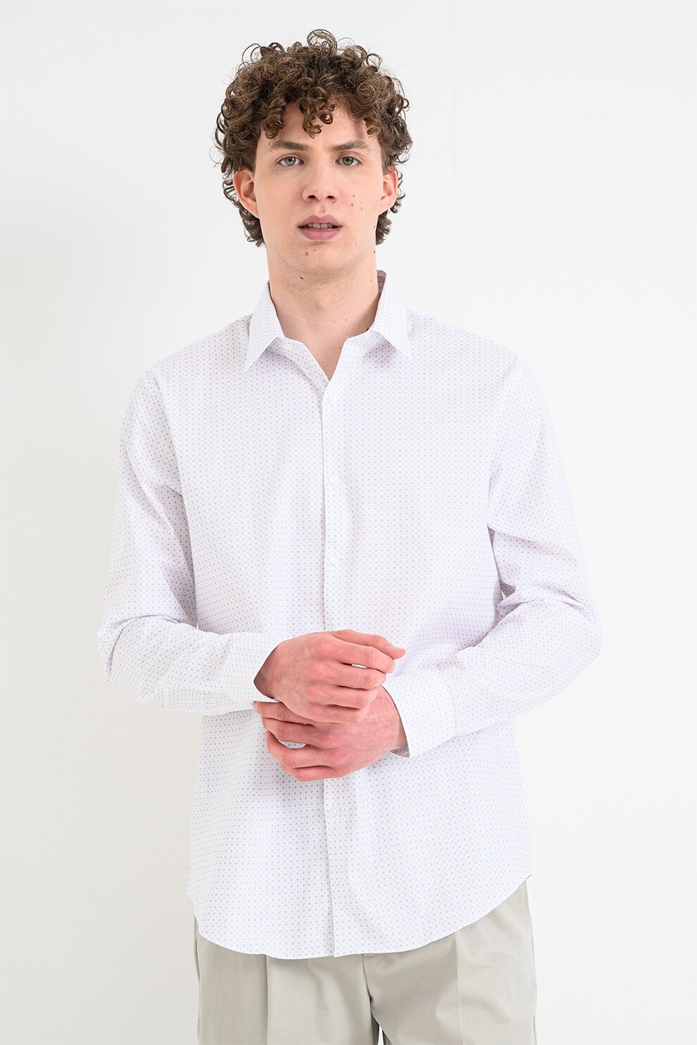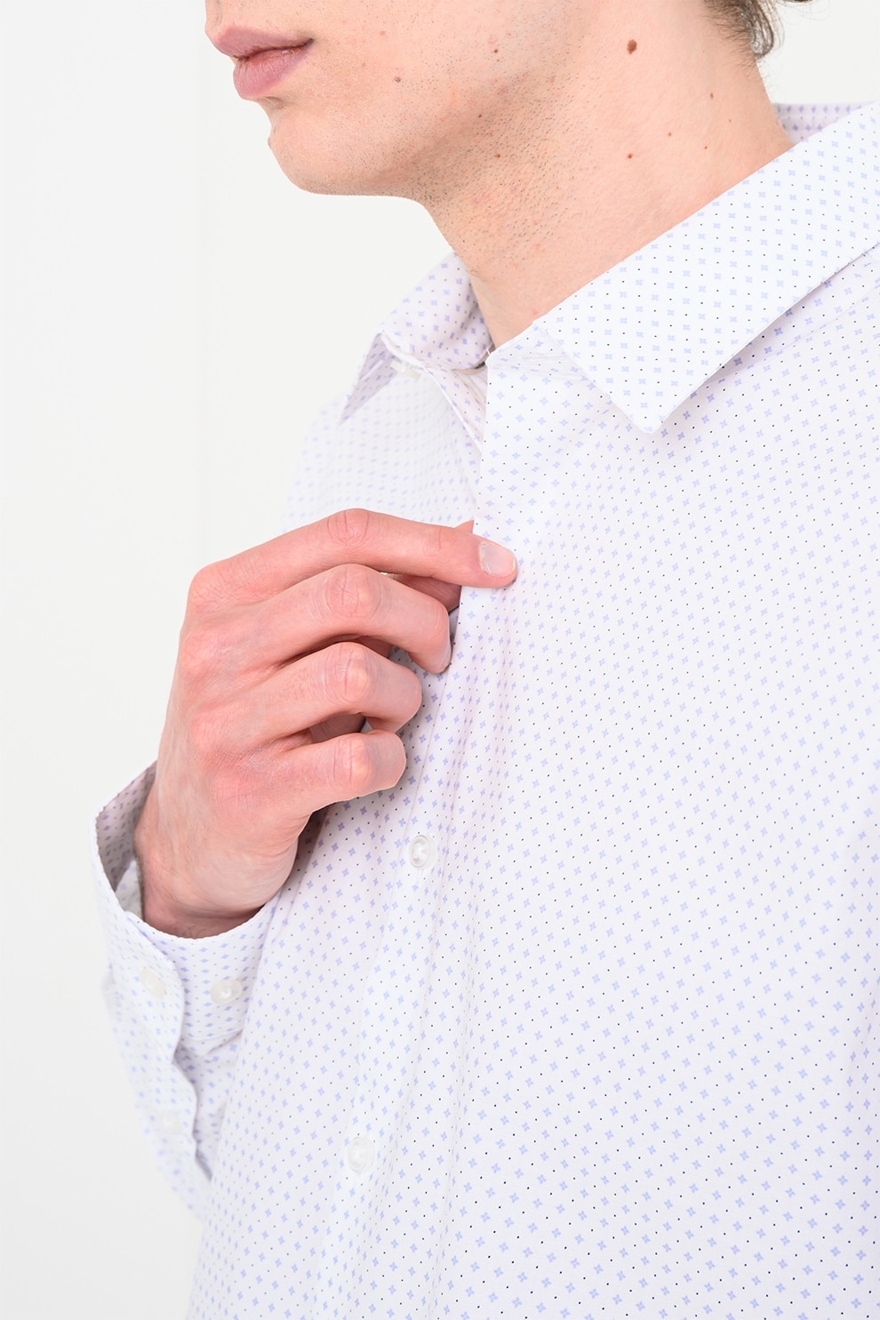 CALVIN KLEIN - Camasa slimg cu model geometric, Alb/Albastru