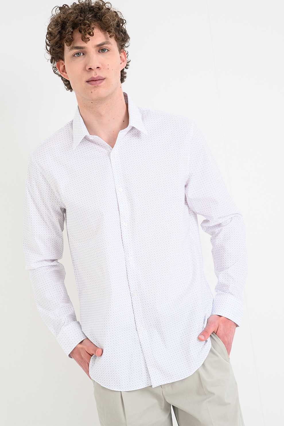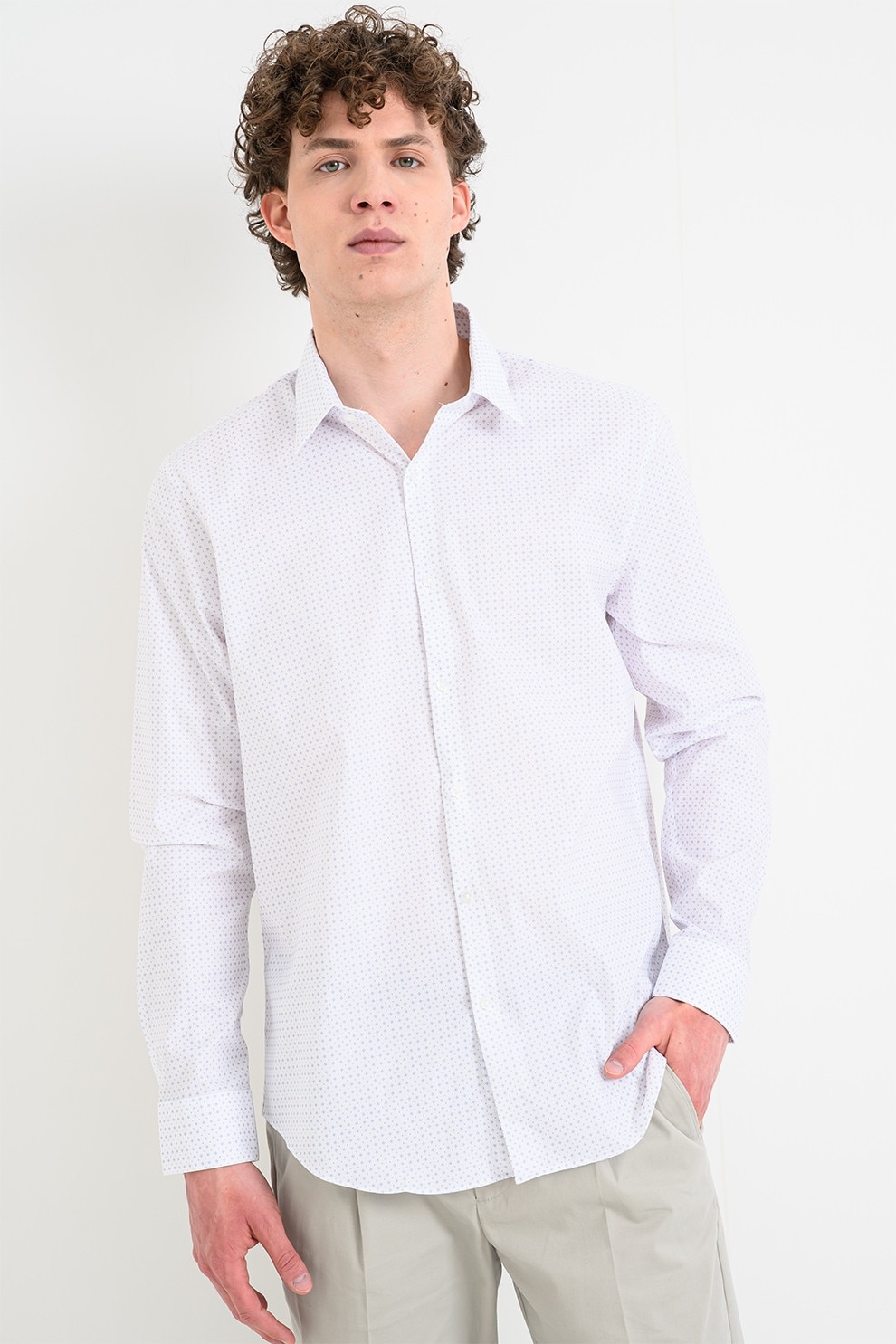 CALVIN KLEIN, Camasa slimg cu model geometric, Alb/Albastru