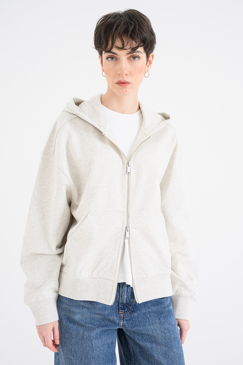 CALVIN KLEIN - Hanorac lejer cu model uni si fermoar, Crem