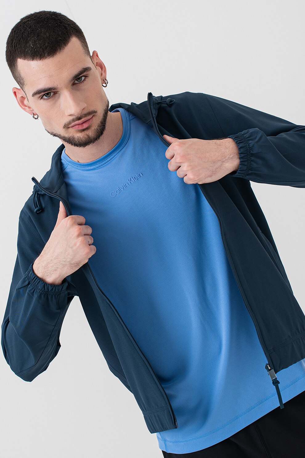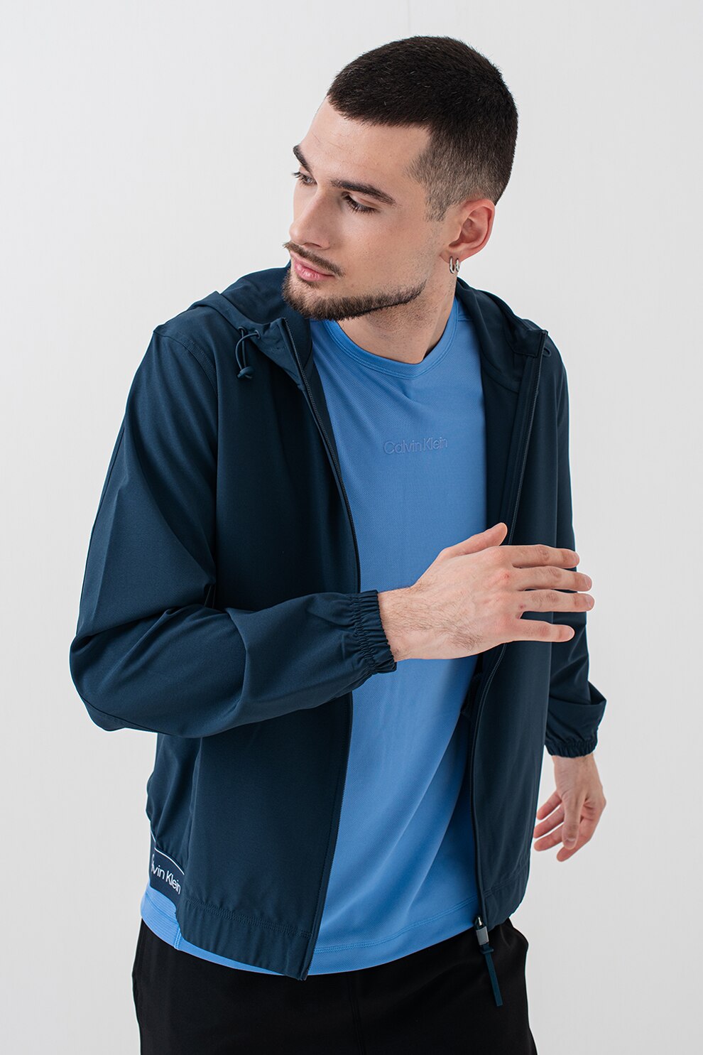 CALVIN KLEIN, Jacheta cu gluga, pentru antrenament, Albastru inchis