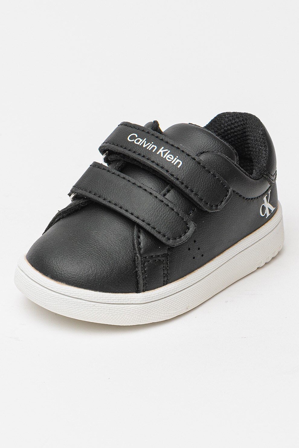 CALVIN KLEIN, Pantofi sport din piele ecologica cu velcro, Negru, Alb murdar, 31 EU