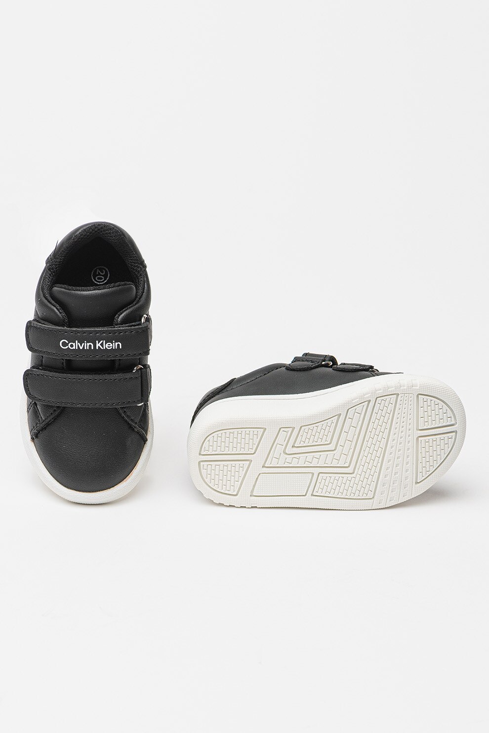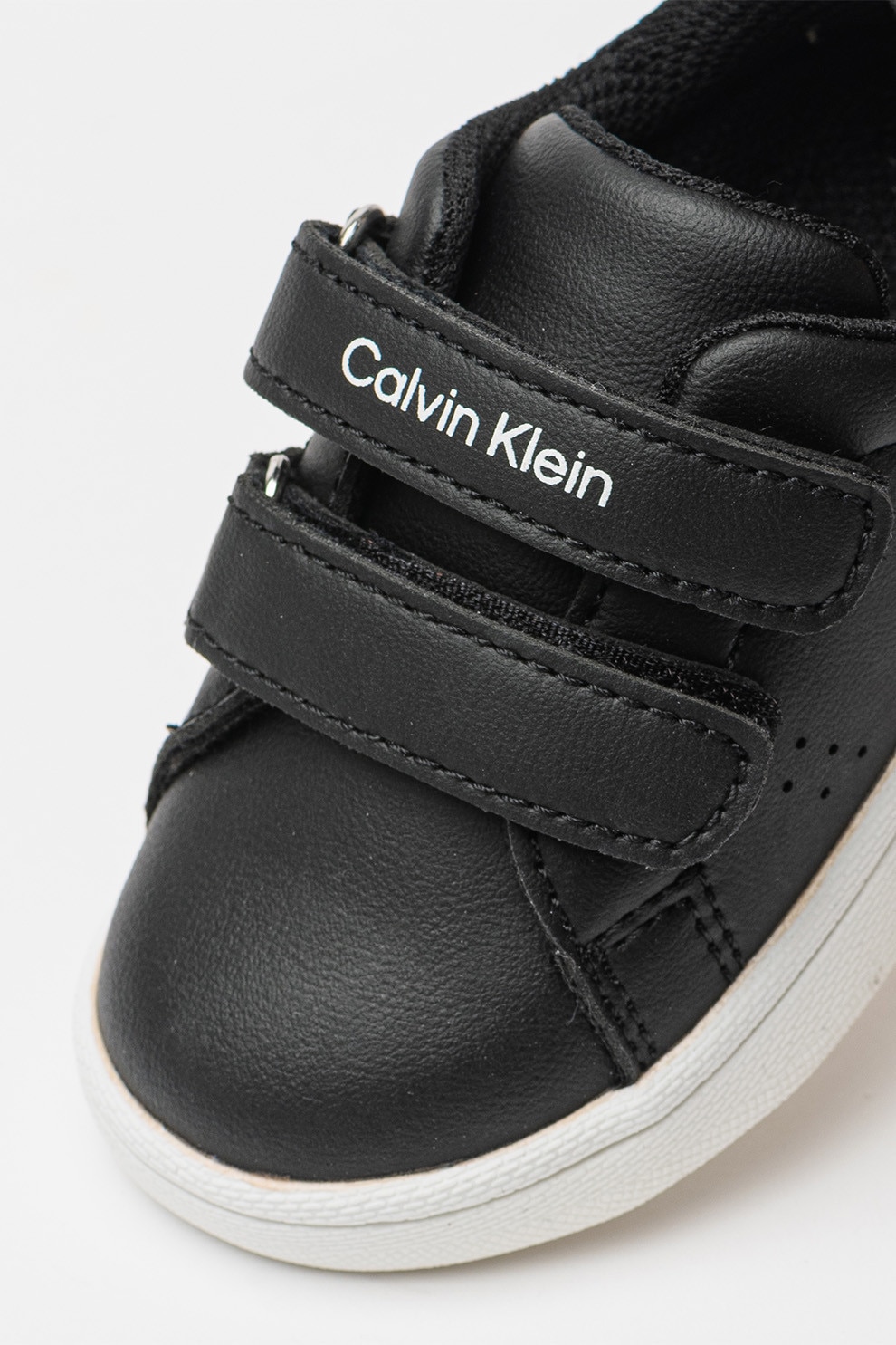 CALVIN KLEIN - Pantofi sport din piele ecologica cu velcro, Negru, Alb murdar, 31 EU