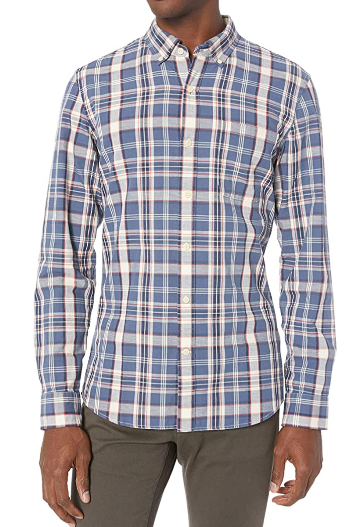 Camasa barbati Goodthreads, Find, Bumbac, Slim fit, Carouri, Albastru, S