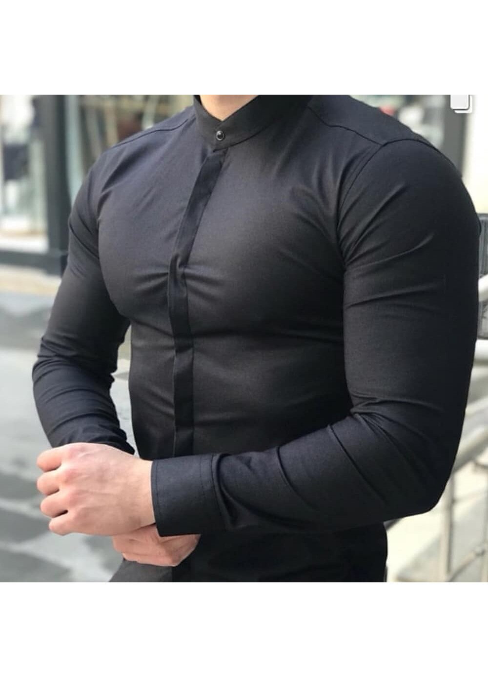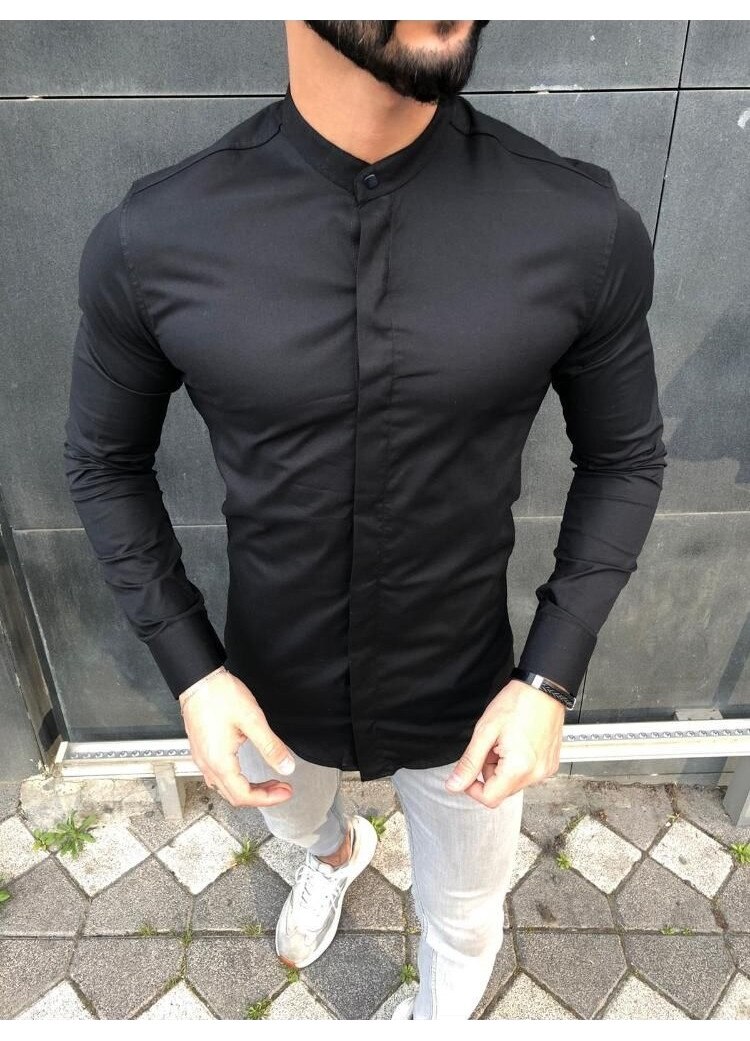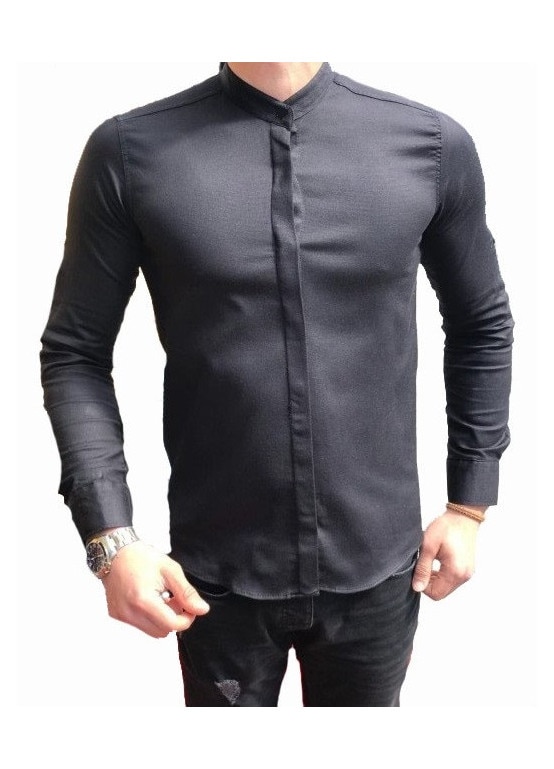 Camasa barbati guler tunica, Negru