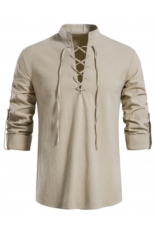 Camasa casual pentru barbati, aerisita, din in, maro, marimea XL