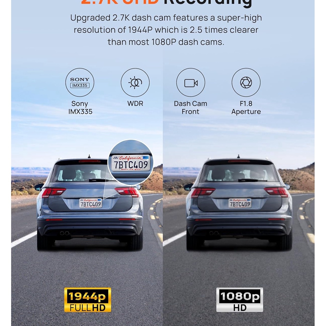 Camera auto 70mai Dash Cam A500S, 70mai 2.7K Front Dash Cam A500S, 1944P UHD Dash Cam for Cars with Sony IMX335