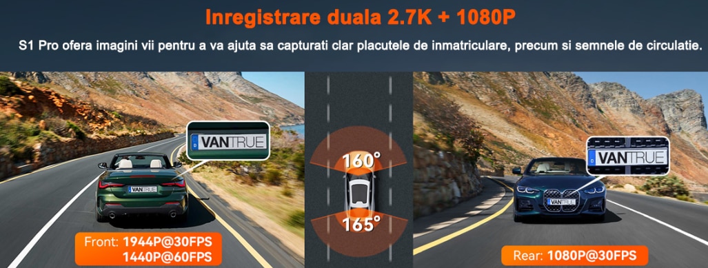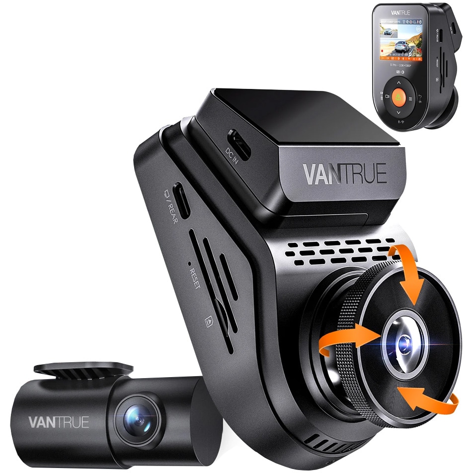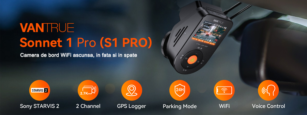 Camera auto de bord duala Vantrue S1 Pro fata-spate cu WIFI, 1440P/60fps, control vocal, Night Vision, ecran 2.0'', GPS, G-sensor si monitorizare parcare