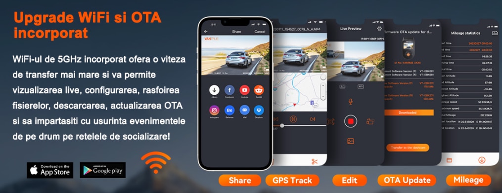 | Functii | GPS Night vision G-Sensor Control vocal |