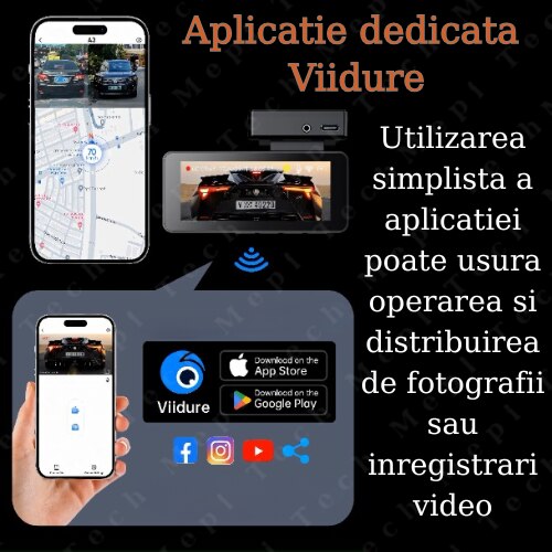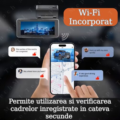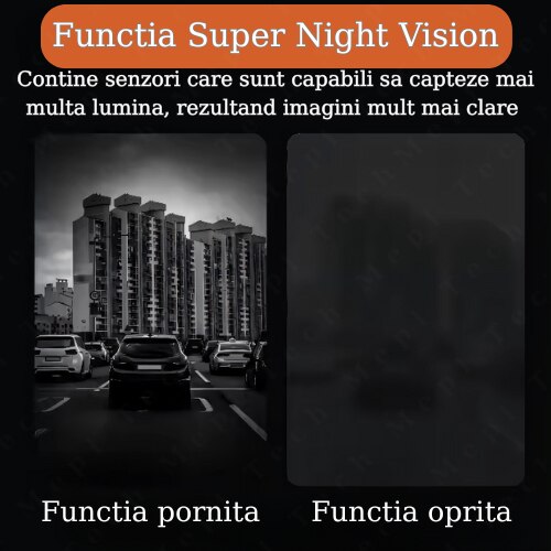 | Functii | Voice control Wifi incorporat Rear-View Super Night Vision Inregistrare in bucla Loop recording WDR G - Sensor GPS integrat |