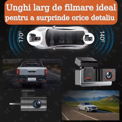 Camera Auto DVR Mepi Tech® A3, Camera de bord ultracompacta, FULL HD 4K, 2160P, Inregistrare in bucla, Vedere nocturna, G-Sensor, Instructiuni vocale, Unghi filmare 170°, Camera video marsarier inclusa in pachet, Gri