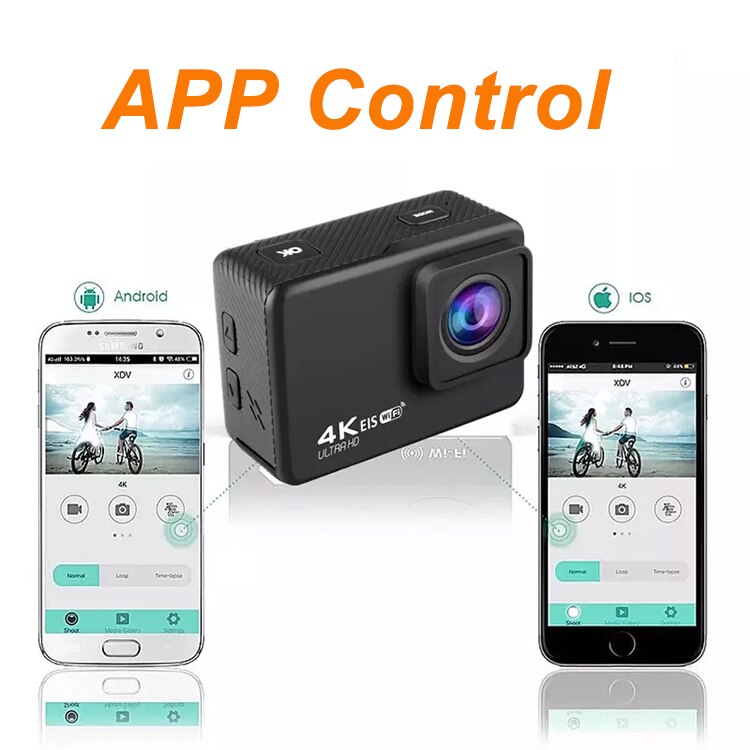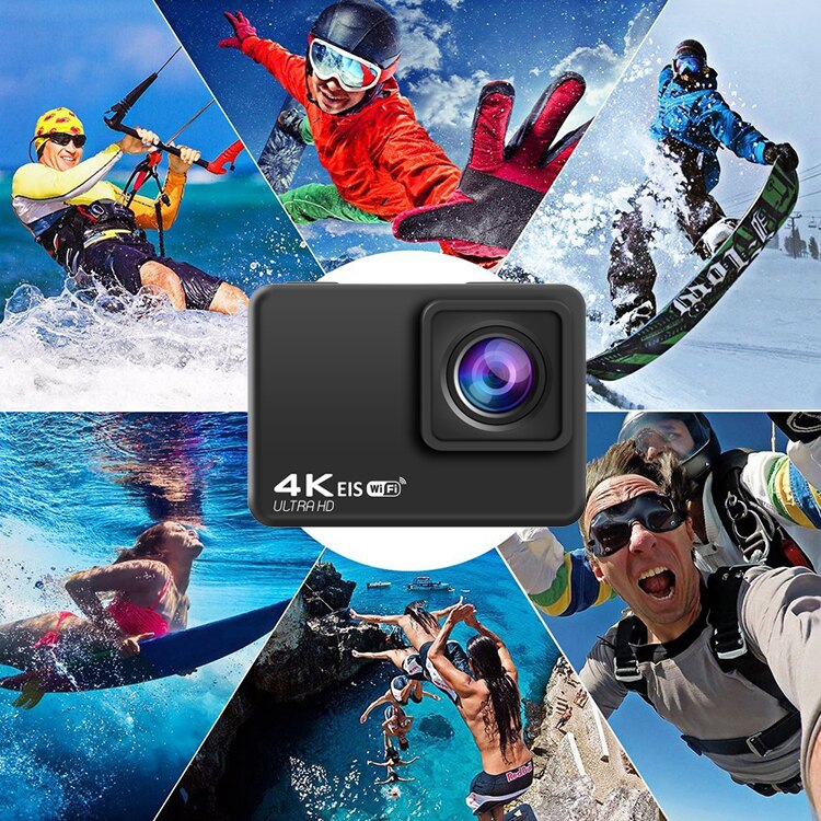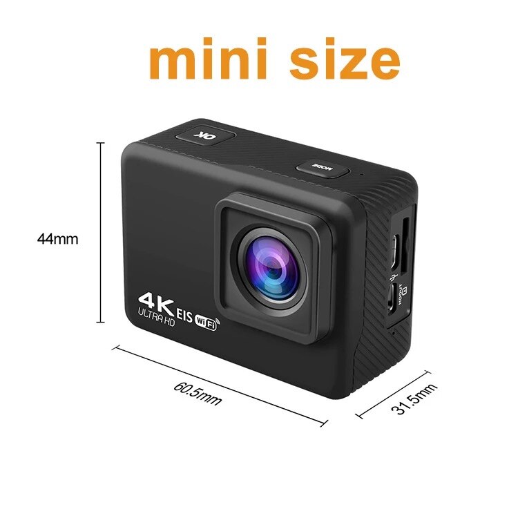 Camera Video Sport 4K E7 Ultradion cu Telecomanda pentru controlarea de la distanta, Action cam WiFi, Accesorii Incluse, Iesire HDMI, Ecran 2 inch IPS, Senzor de imagine Sony IMX386 13M, Rezistenta la Apa, Negru