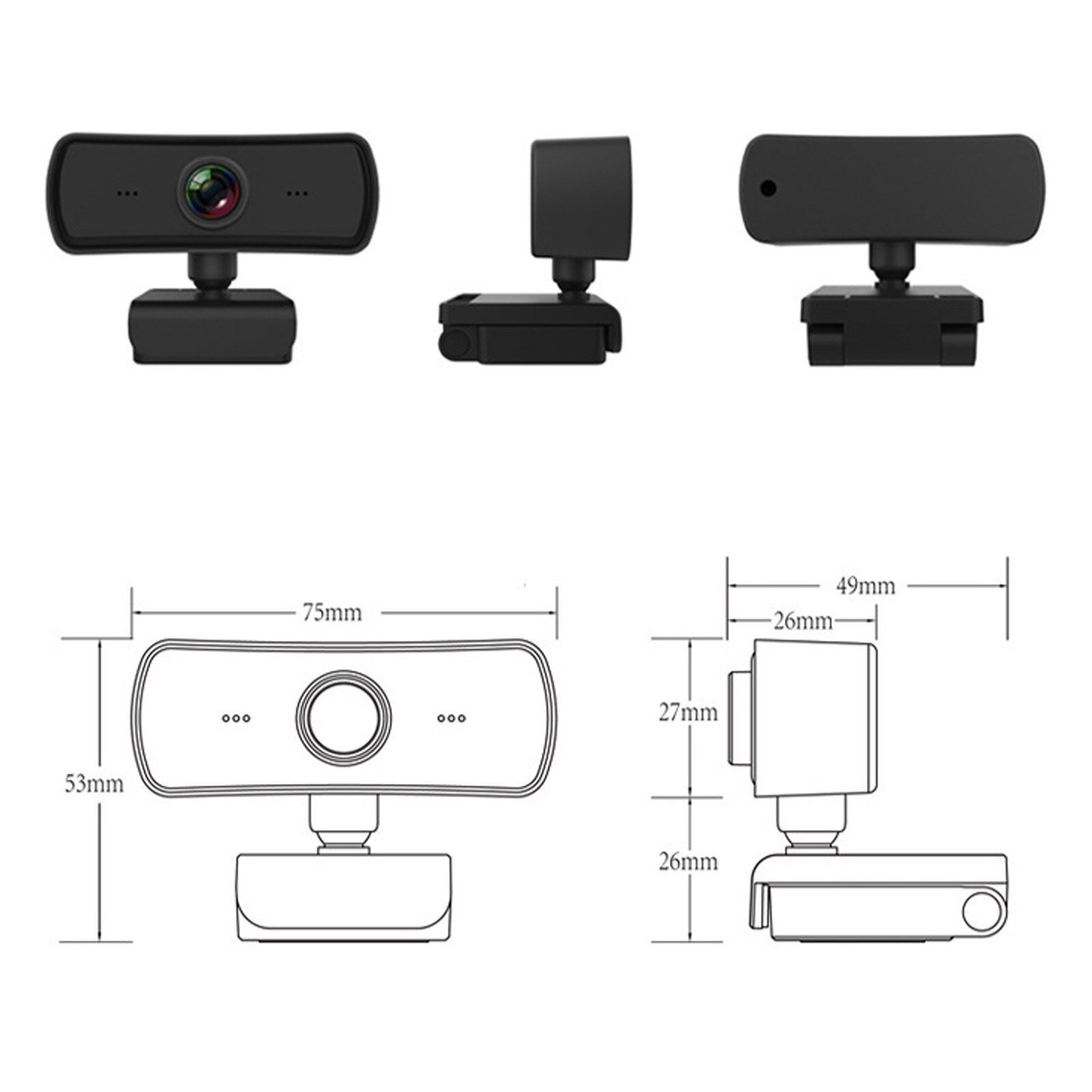 Camera webcam, Axroad Mall, Autofocus, Rezolutie 1920 * 1080P, 2 milioane de pixeli, USB 2.0, Microfon incorporat, Capac intimitate incluse, Ring Light, Trepied, Compatibil cu XP, Vista, Win7/8/10, Mac si altele, 7.5*5.3*4.9cm, Negru