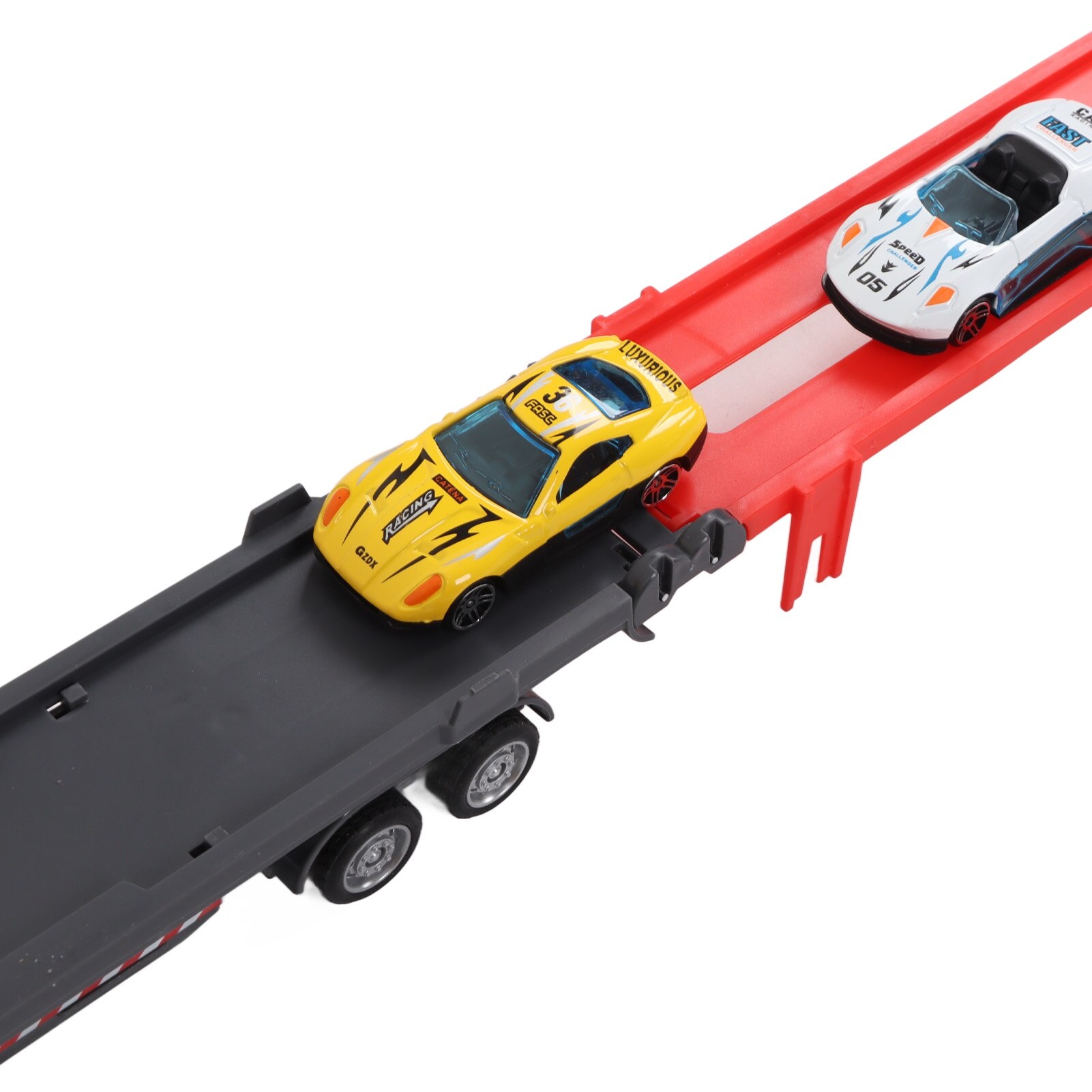 Camion Mega Hauler, Mmgoqqt, 150x59.1cm, rosu, set cu pista pentru masinute