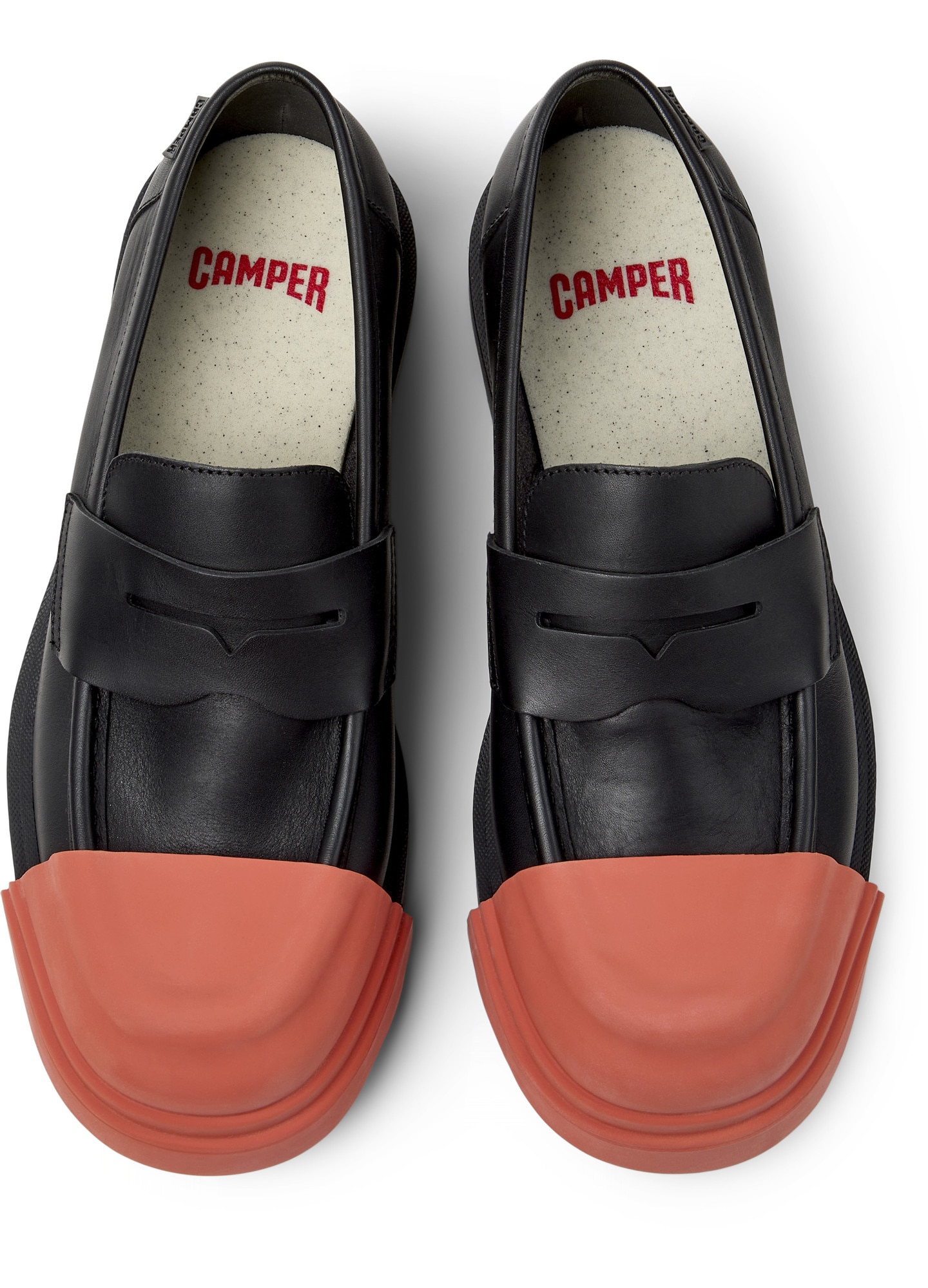 Camper, Pantofi loafer de piele cu aplicatie cap-toe Junction, Negru, Portocaliu mandarina, 45