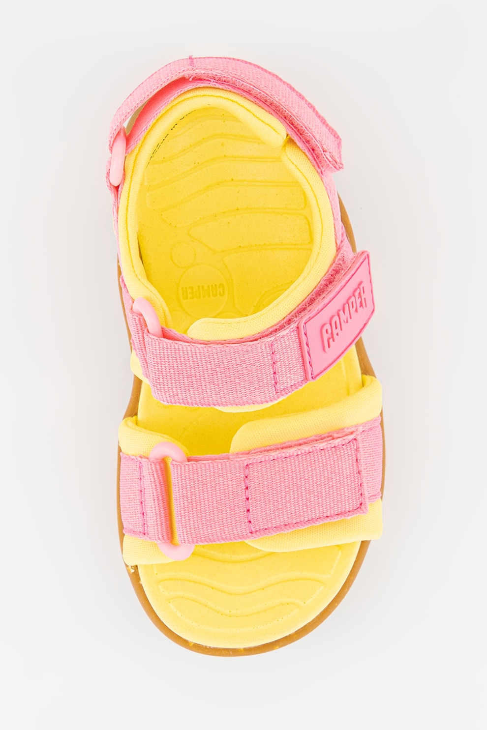 Camper - Sandale cu velcro si doua nuante, Galben pai, Roz, 28 EU