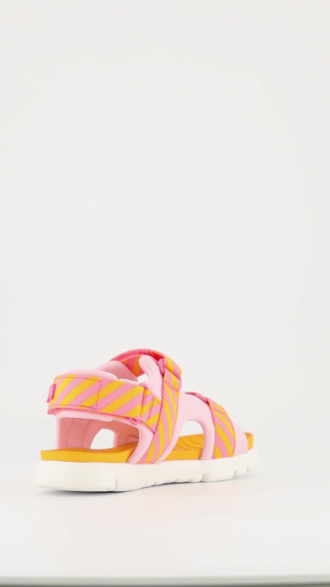 Camper - Sandale din material textil cu velcro, Portocaliu, Roz, 32 EU