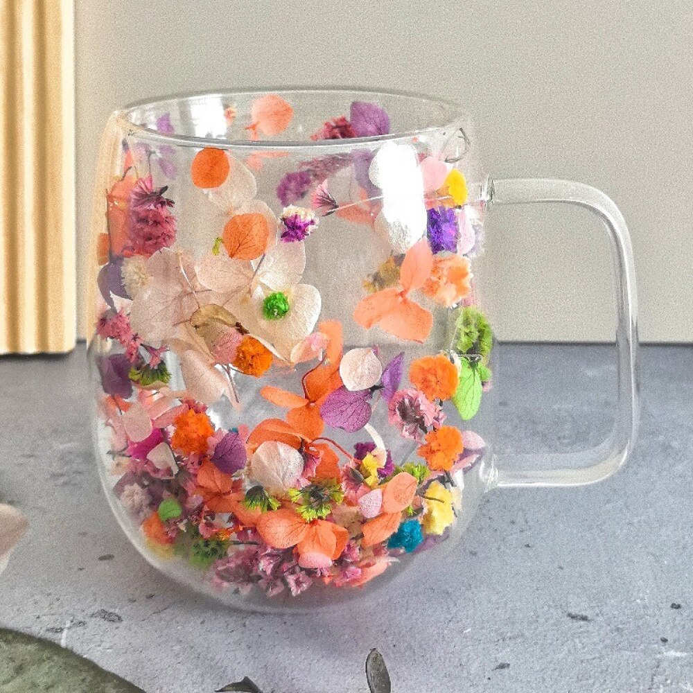 Cana 250ml CNNIK®, cu flori uscate, sticla borosilicata, 250ml, Portocaliu, design inalt si rotund