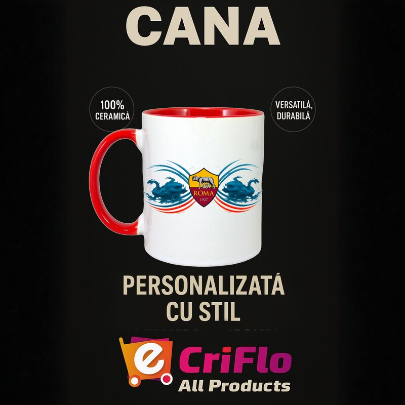 Cana AS Roma Italia, Ceramica, Cri-Flo, 330 ml, Maner si Interior Rosu