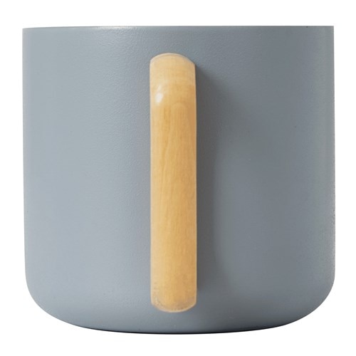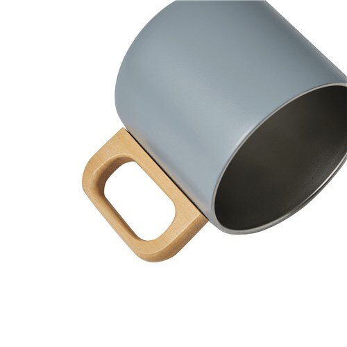 Cana Bremen Rustic Trip, inox, pereti dubli, gri mat la exterior, argintie la interior, maner din lemn, capacitate 350 ml, dimensiuni Ø8, 5 x 8 cm