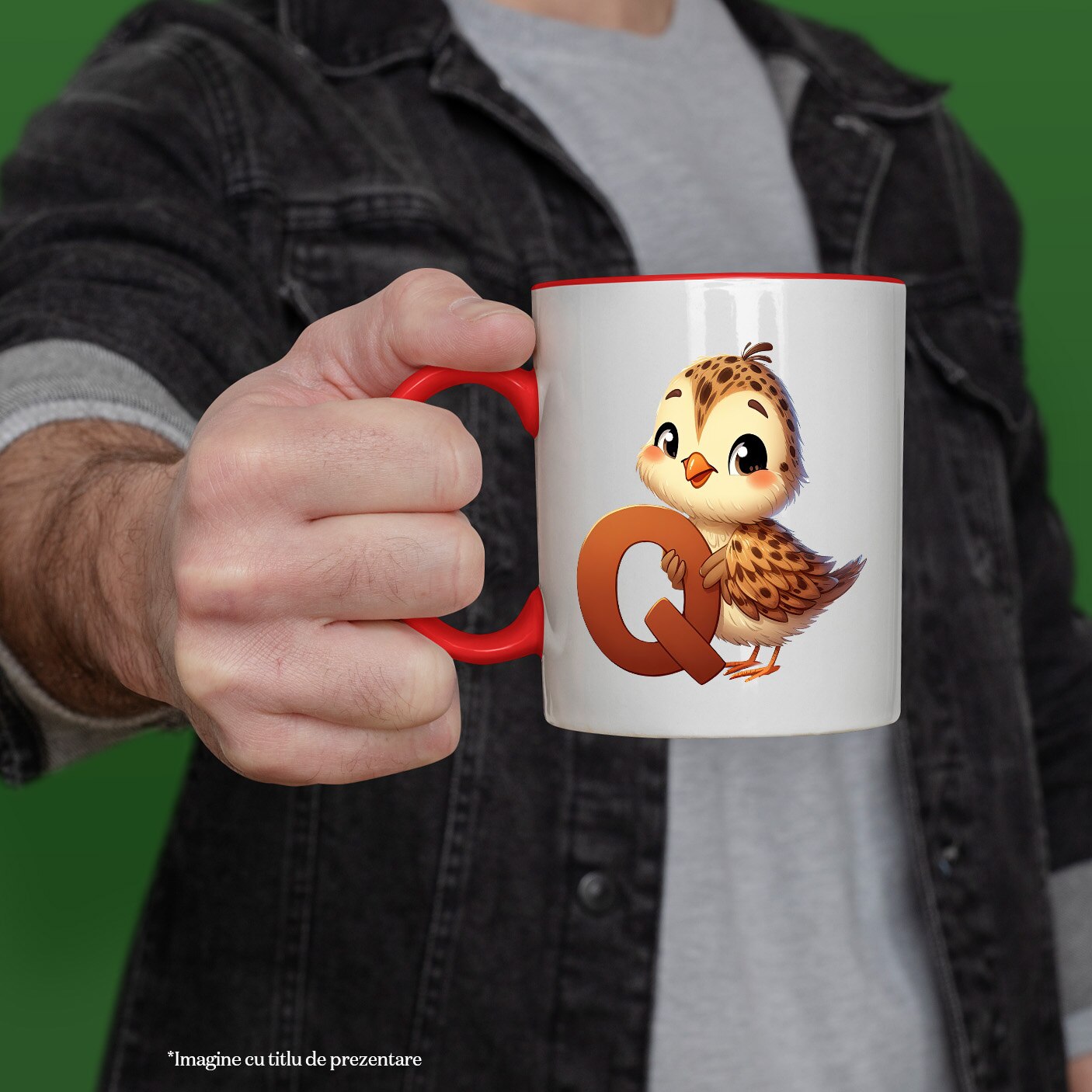 Cana cu pasare cu litera "Q", ilustratie, pentru copii, scoala, elev, clasa I, abecedar, zboara cu Maner Rosu