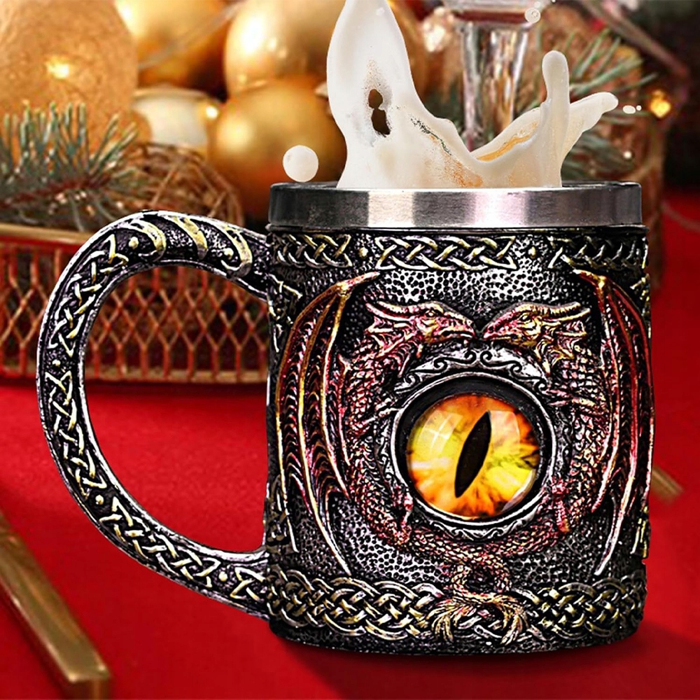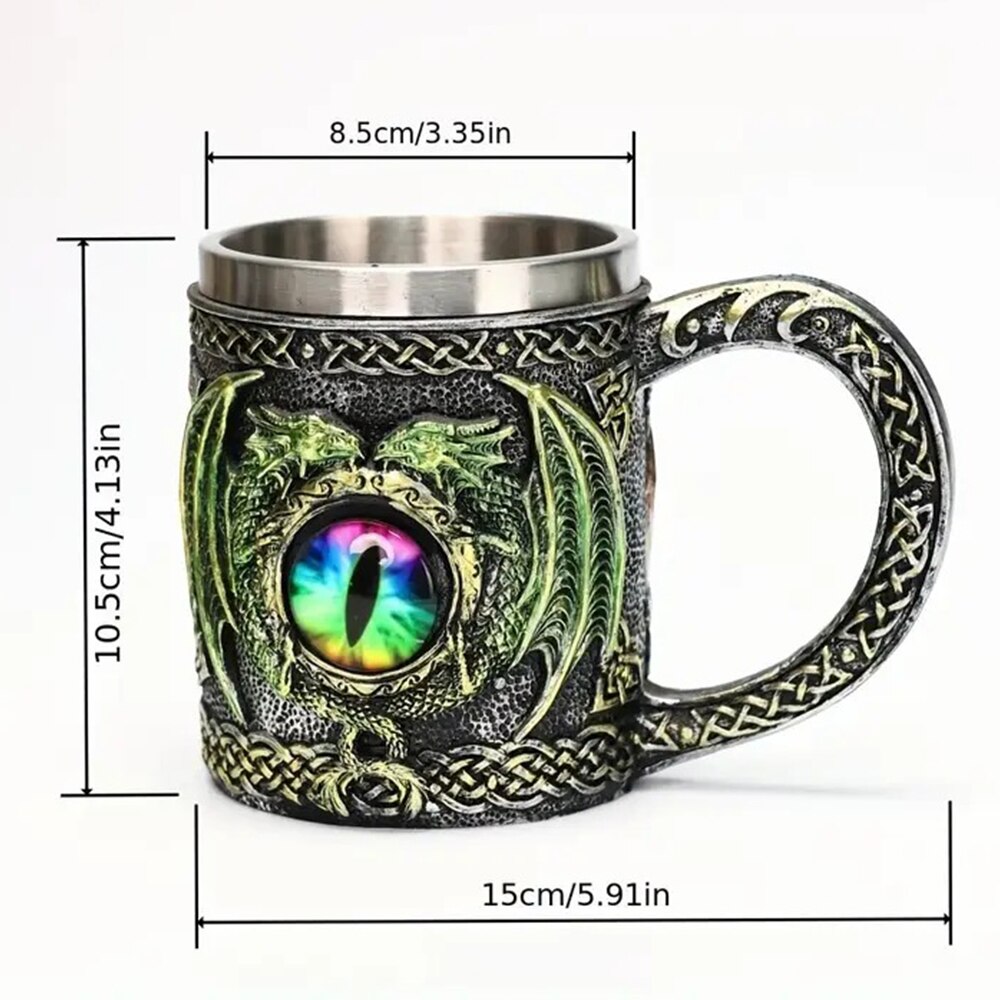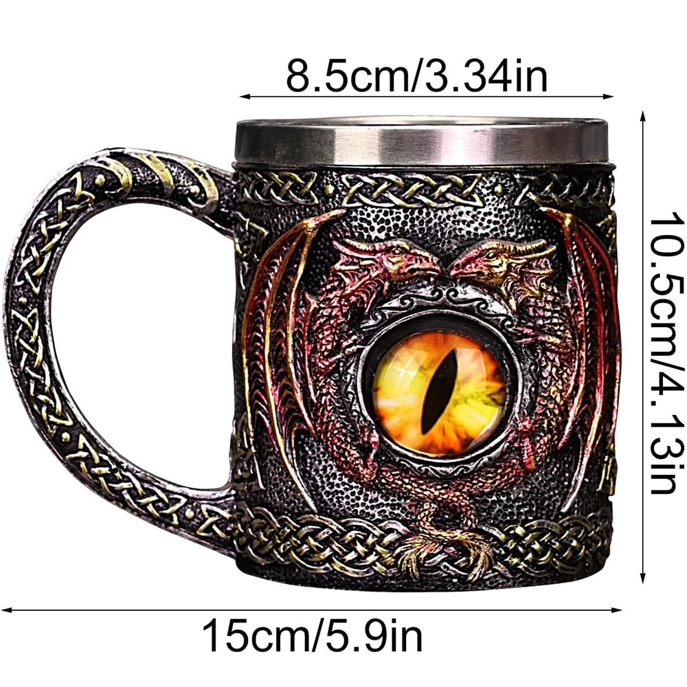 Cana din otel inoxidabil cu design dragon, Cupa cu pereti dubli Design Gotic Dragon Eye Cadou creativ Stee inoxidabil de inalta calitate, Cupa Pterozaur, ceasca de cafea Dragon, 15x10.5cm, set cadou, multicolor