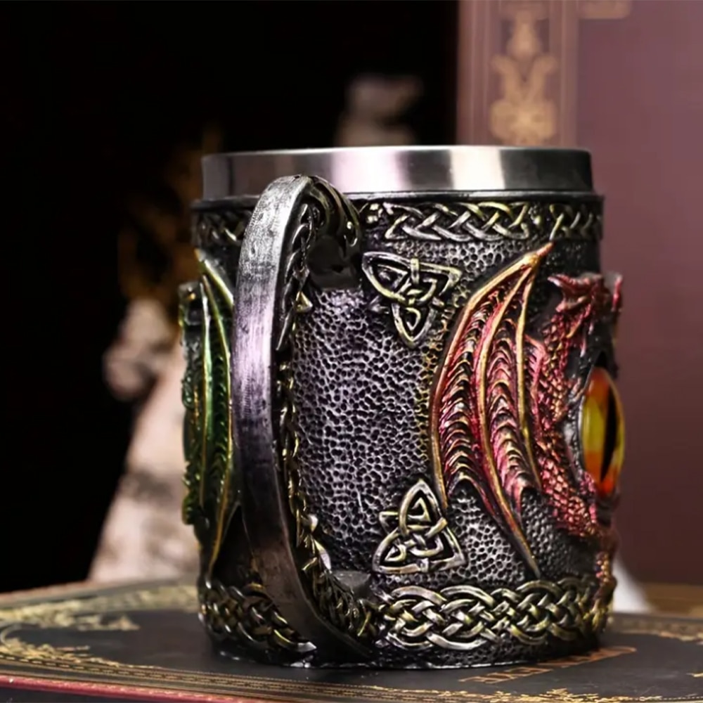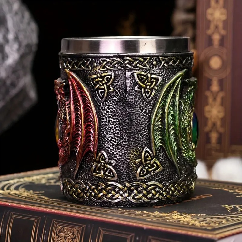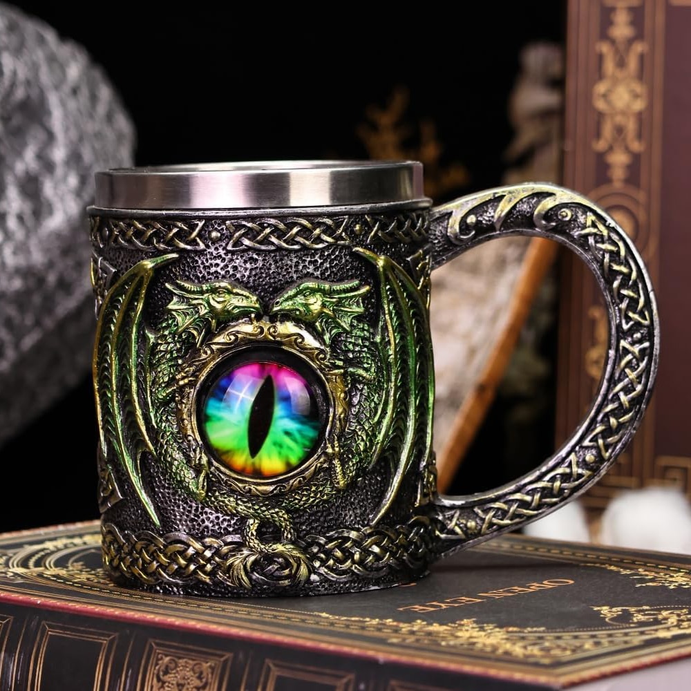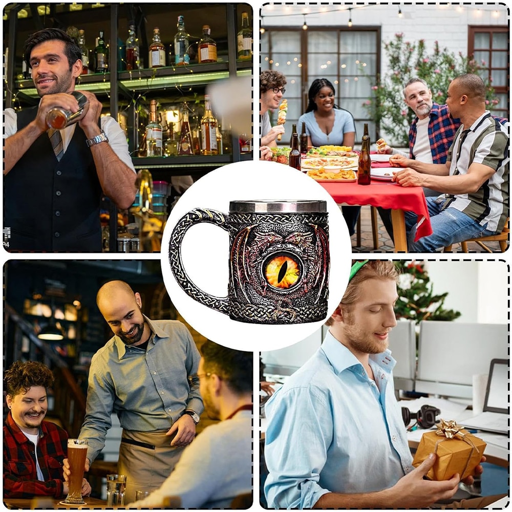 Cana din otel inoxidabil cu design dragon, Cupa cu pereti dubli Design Gotic Dragon Eye Cadou creativ Stee inoxidabil de inalta calitate, Cupa Pterozaur, ceasca de cafea Dragon, 15x10.5cm, set cadou, multicolor