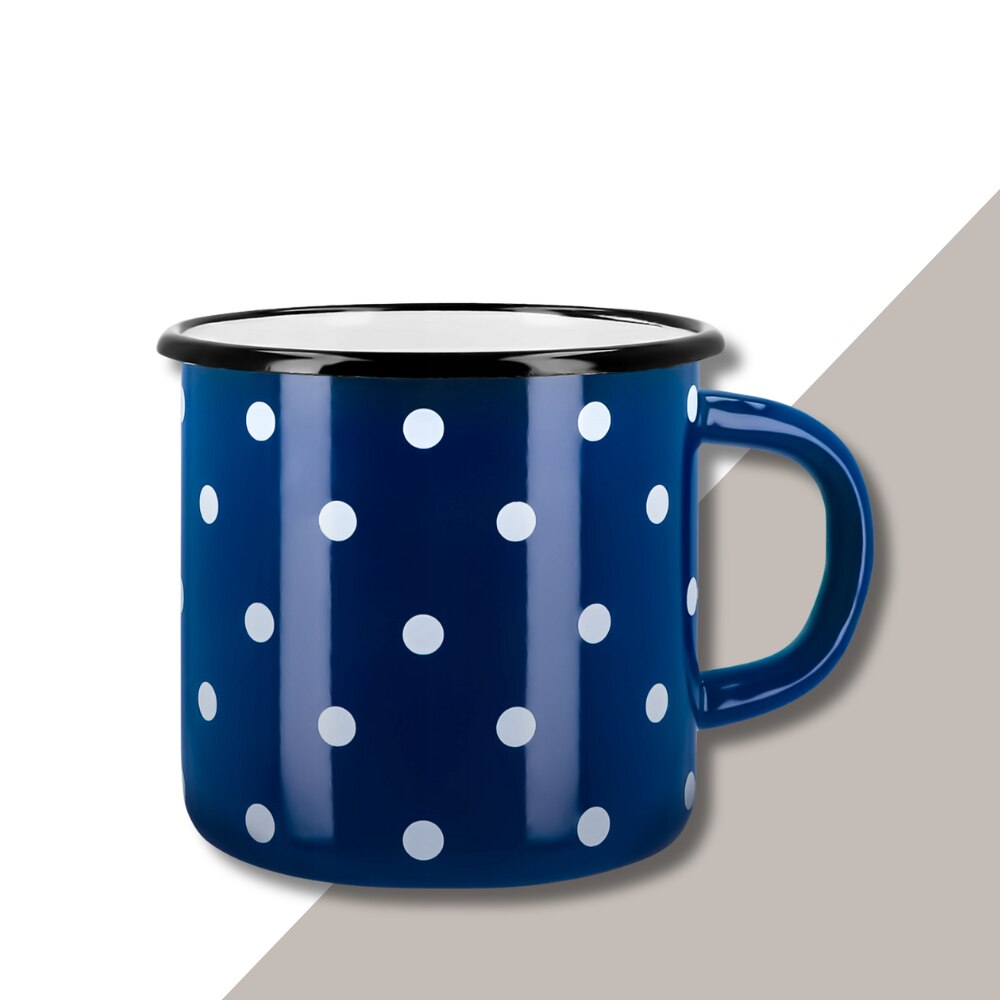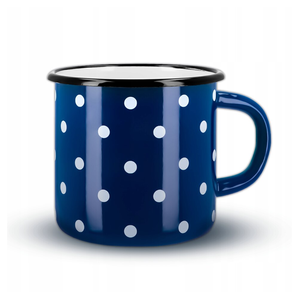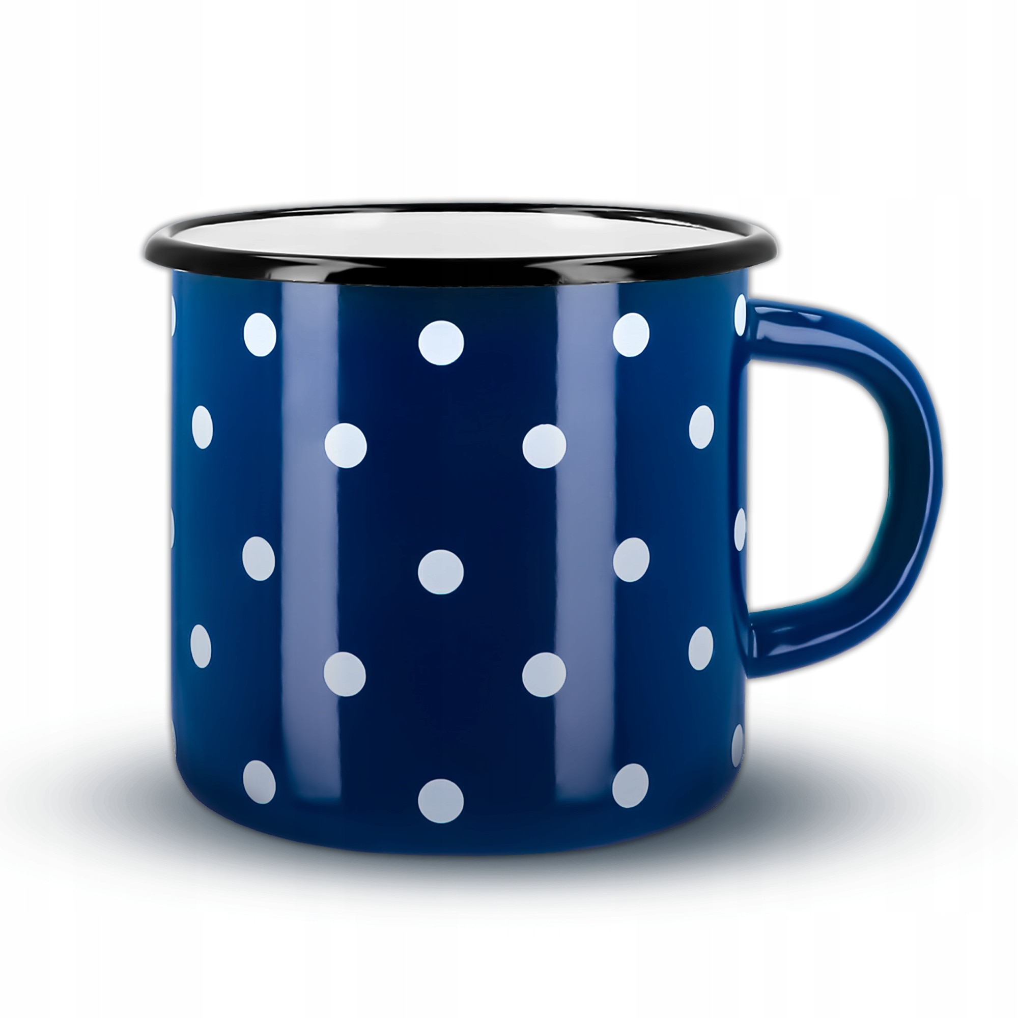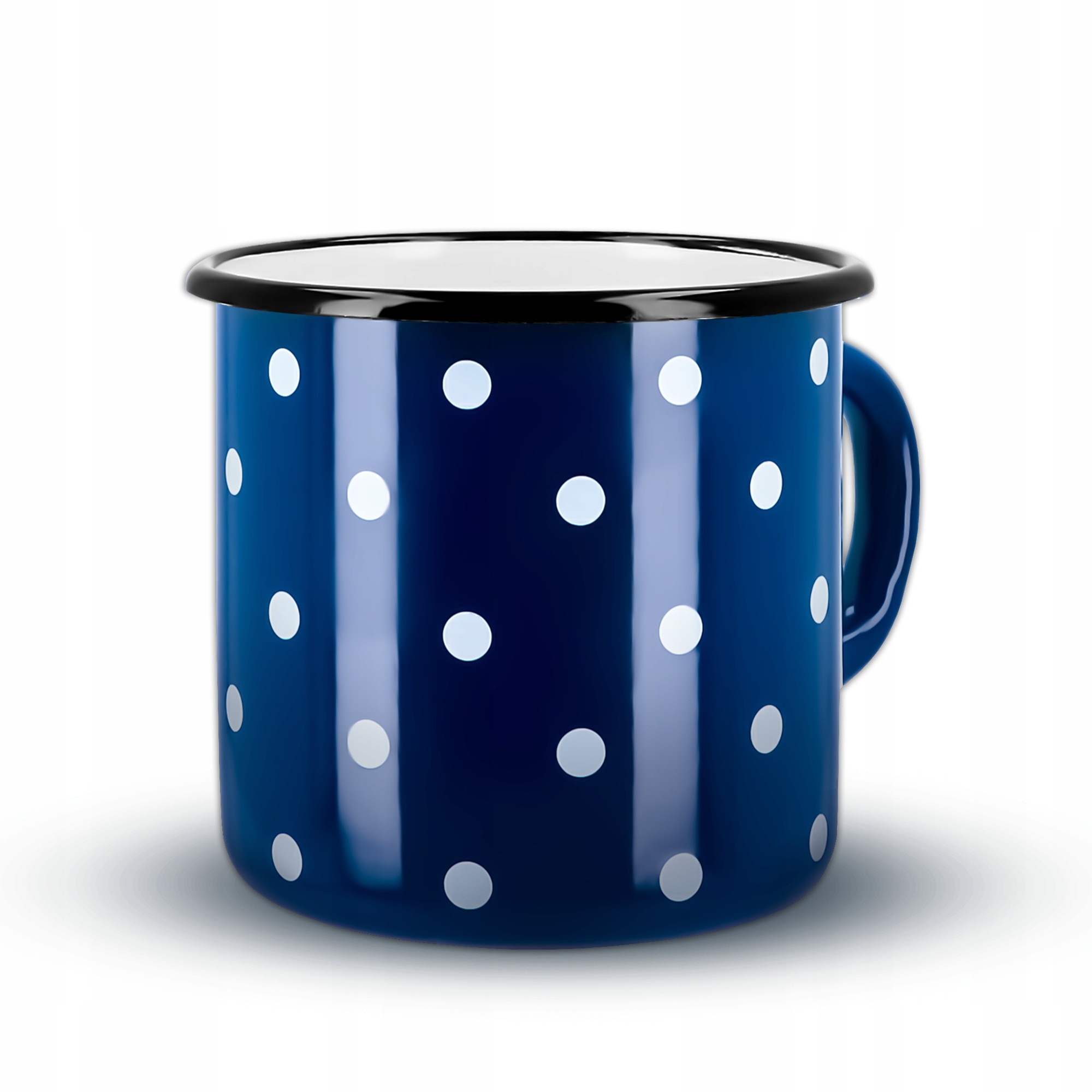 Cana Emailata, Vase Olkusz, Material: Otel Carbon, Culoare Interior: Alb, Culoare Exterior: Bleumarin, Decorare: Puncte, 11 x 11, 5 cm, Multicolor, 1 Bucata