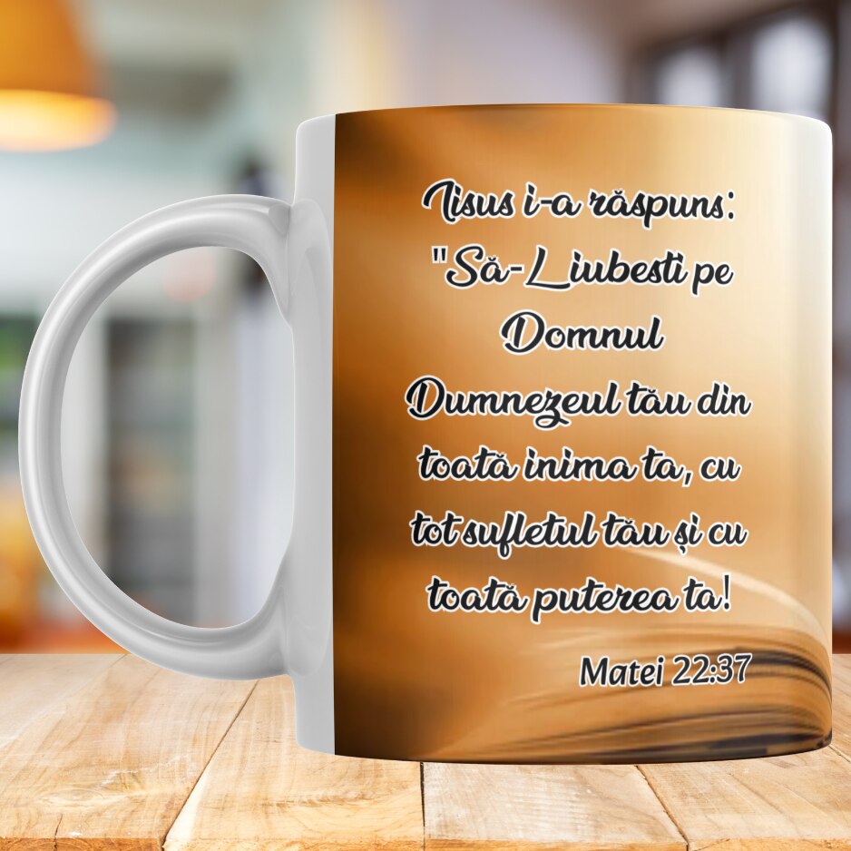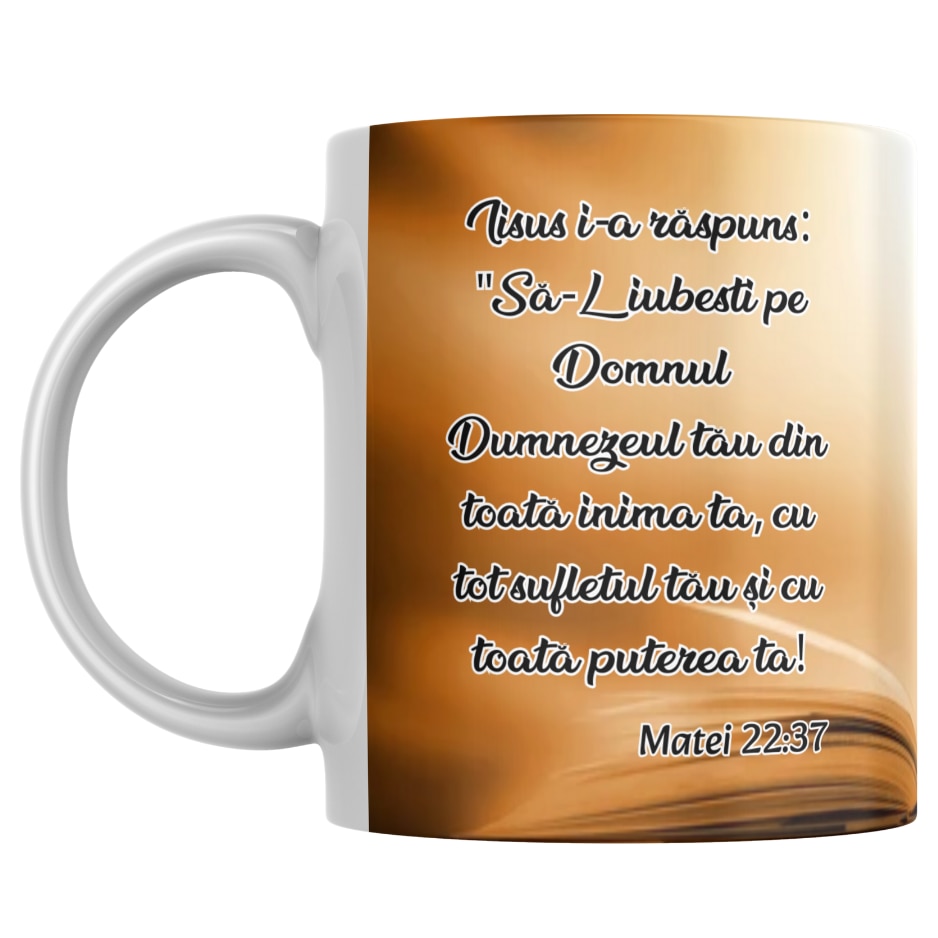 Cana personalizata - Iisus i-a raspuns, sa-l iubesti pe Domnul Dumnezeul tau, alba, 330 ml