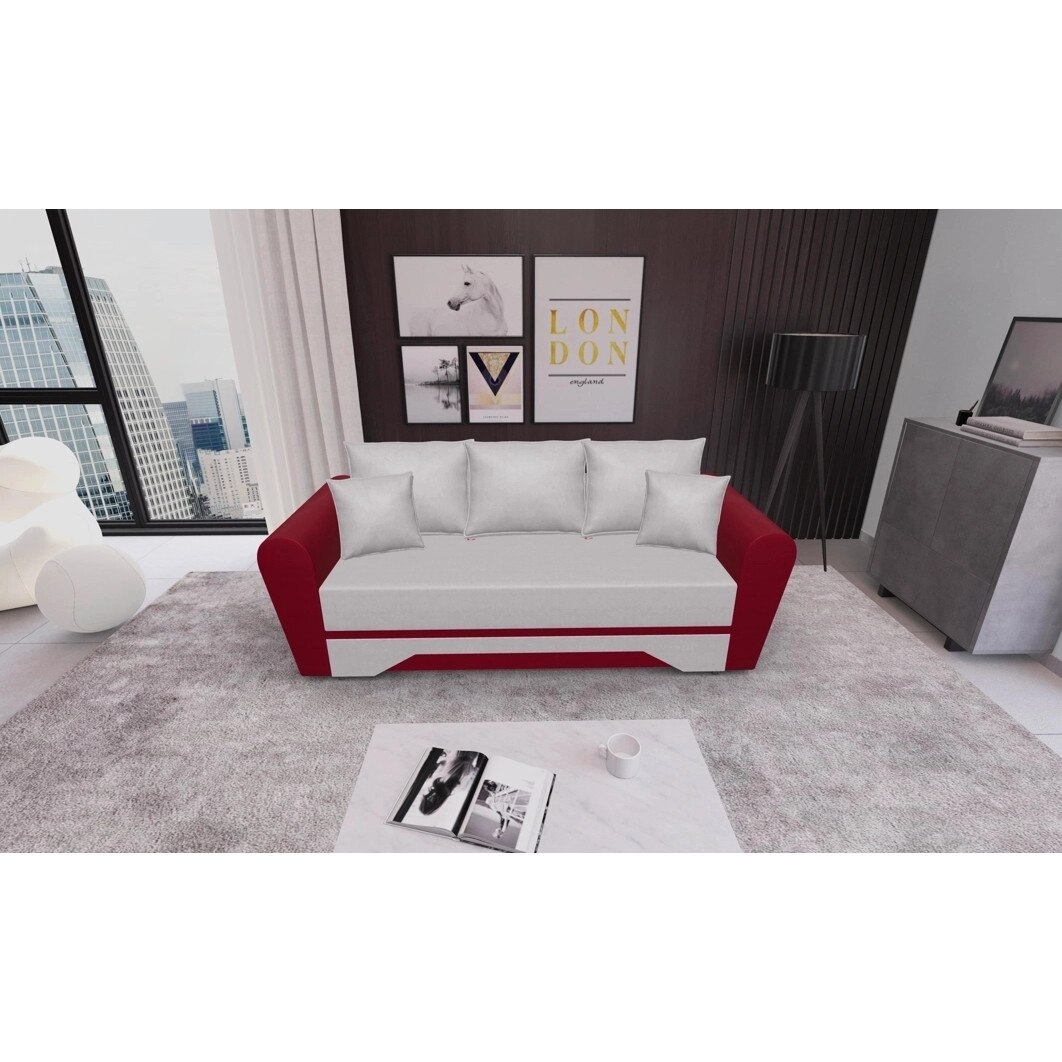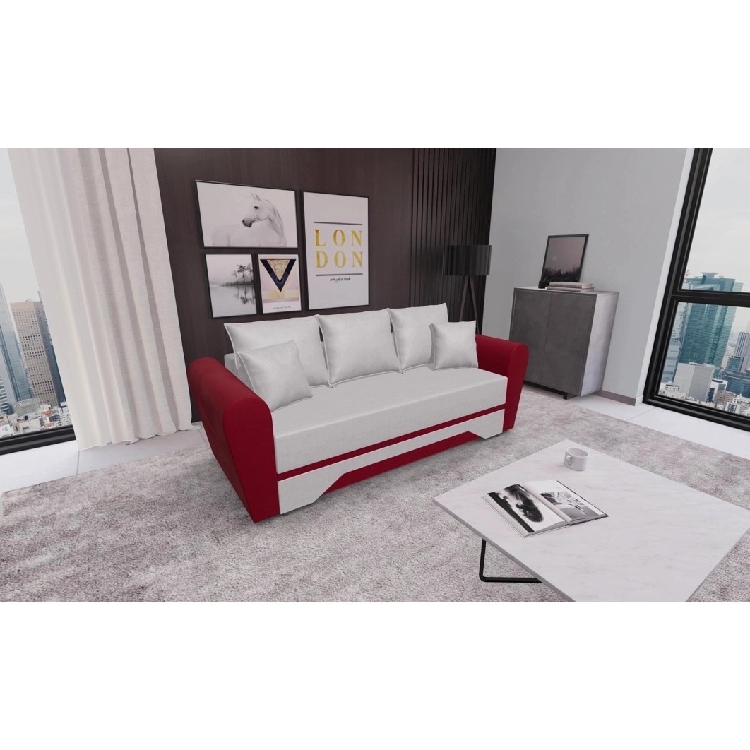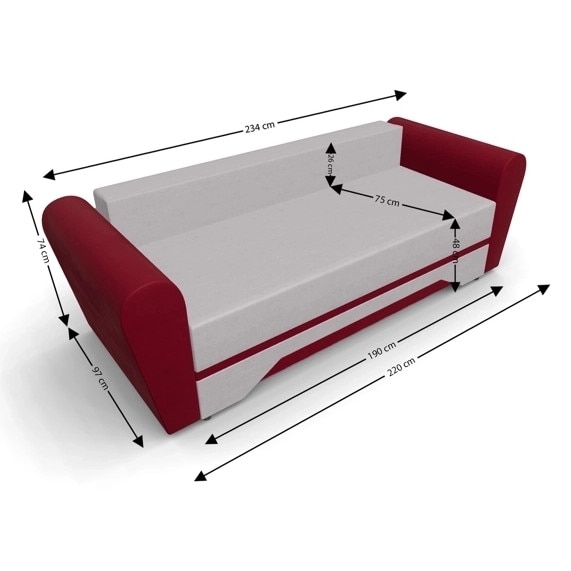 Canapea Extensibila Atlanta mica Fresh1+ Fresh8, 220 x 97 x 74 cm, culoare bej cu rosu zmeuriu