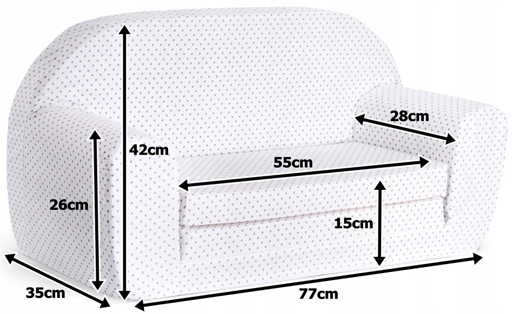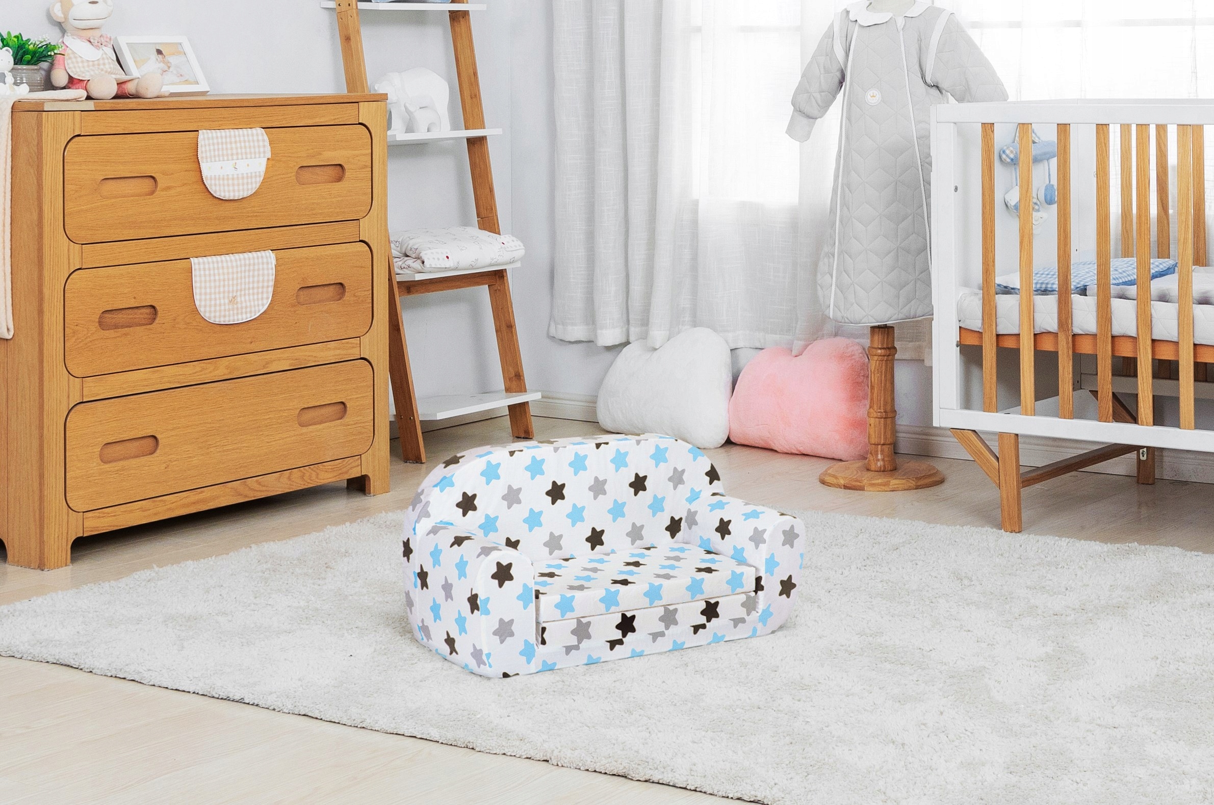 Canapea pliabila pentru copii Tuppi, 77x42x90cm, Husa detasabila, Model stelute, Multicolor
