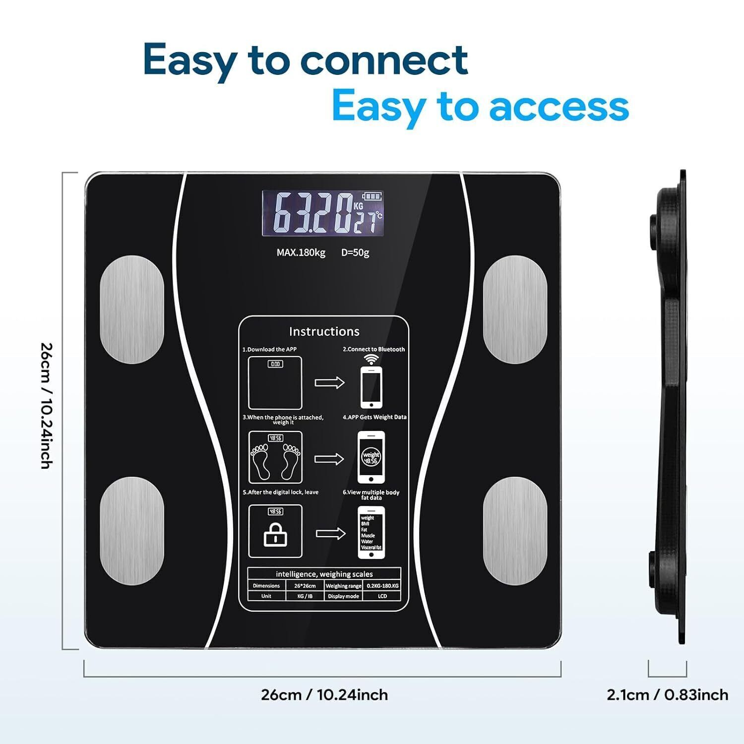 Cantar Corporal Electronic Inteligent De Baie, Bedee®, Cu Aplicatie Smart, De Diagnostic Corporal, 0, 1-180 kg cu afisaj LCD, tehnologie Stepper, Digital, analiza compozitiei corporale, conectivitate Bluetooth, 260x260x21mm, Negru