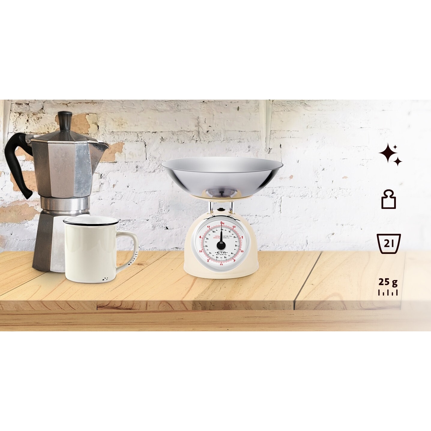 Cantar mecanic de bucatarie ETA Storio 5777 BEJ, 5 kg, precizie 25g, vas 5 L din otel inoxidabil