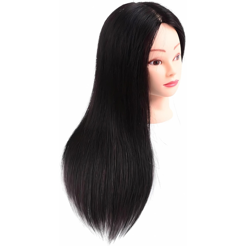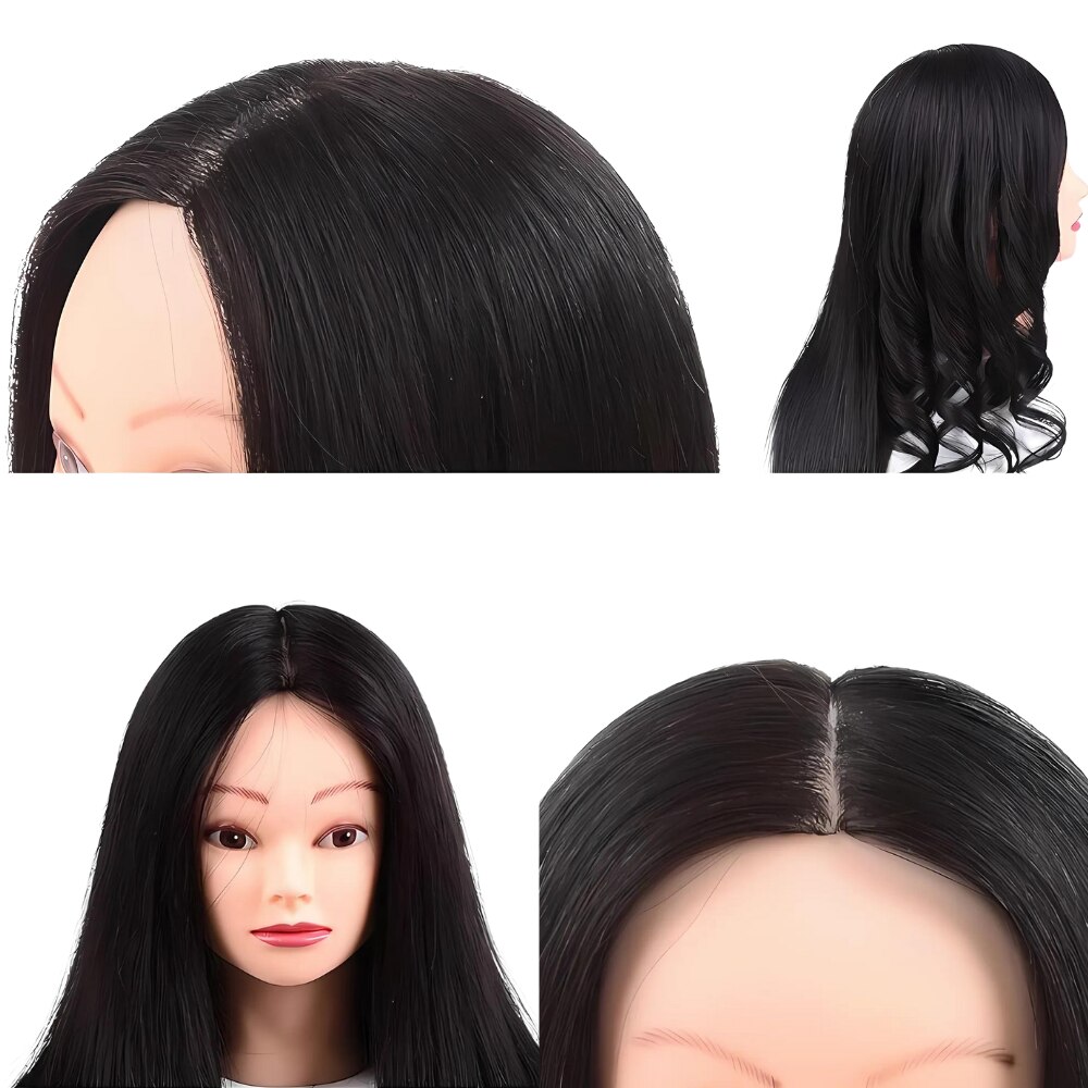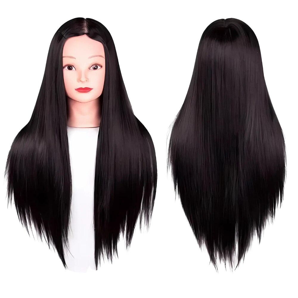 Cap de Manechin Profesional Promerco®, culoare negru, lungime de 70 cm, aspect natural, pentru exersat coafuri, impletituri