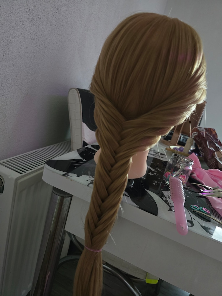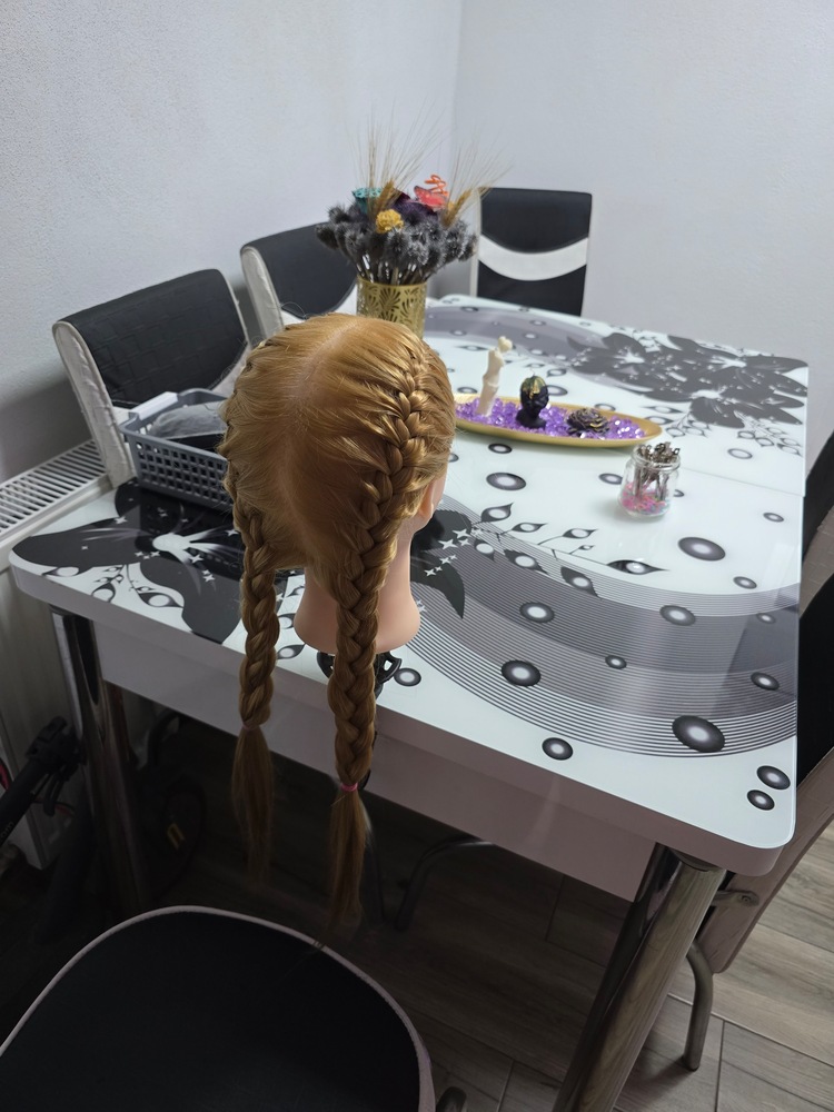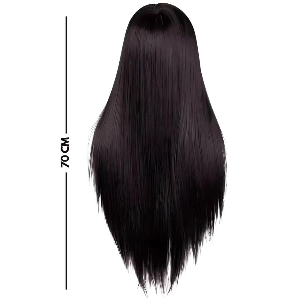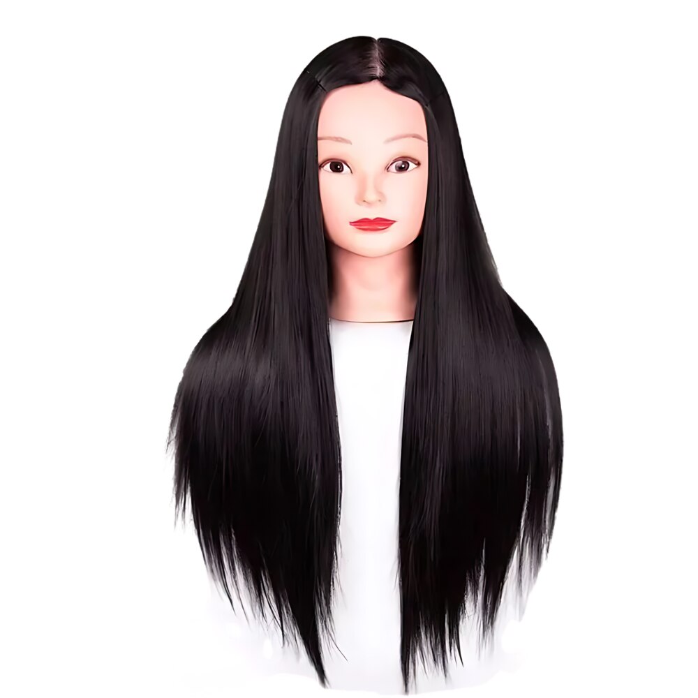 Cap de Manechin Profesional Promerco®, culoare negru, lungime de 70 cm, aspect natural, pentru exersat coafuri, impletituri