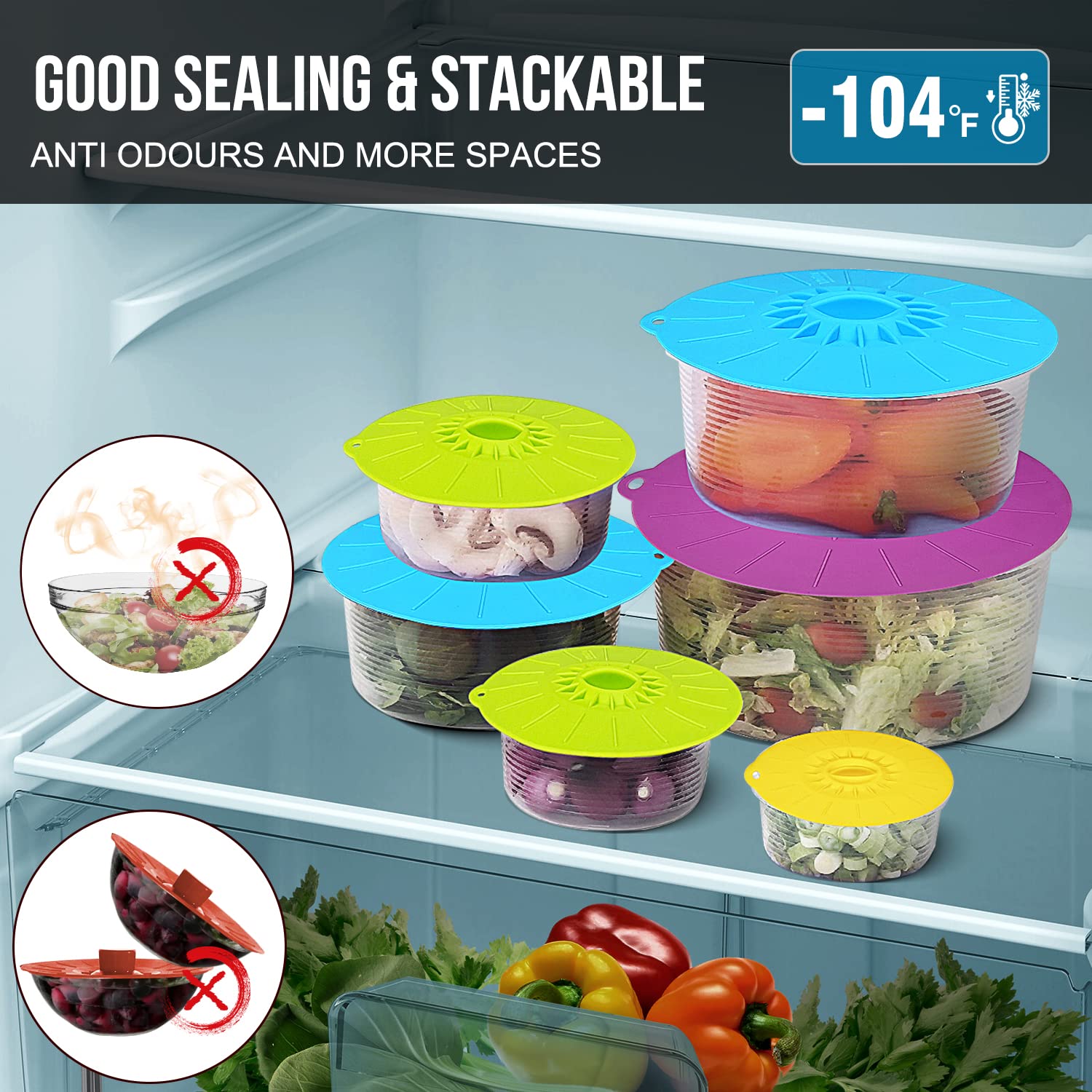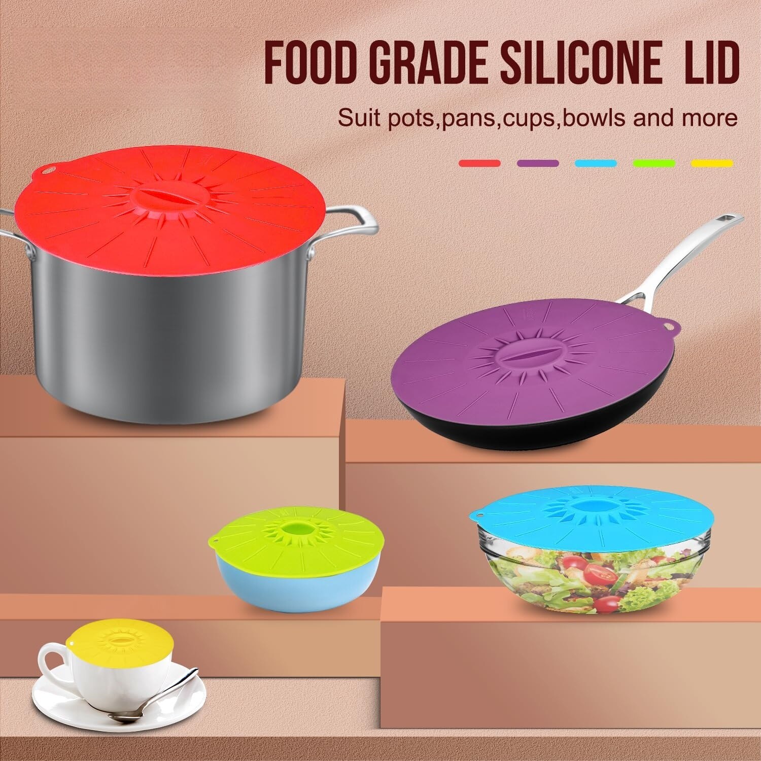 Capace din silicon - 5 pachete de capace rezistente la stropire la cuptorul cu microunde, capace reutilizabile din silicon pentru depozitarea alimentelor, potrivite pentru boluri, cesti, tigai, farfurii, oale, tigai