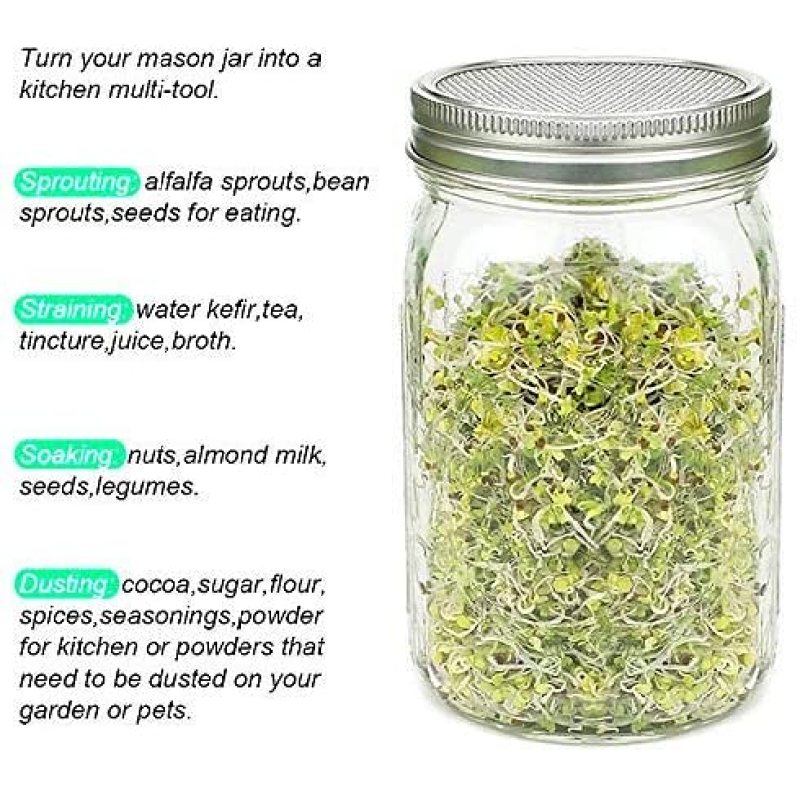 Capace Germinatoare Seminte Enforose, Otel Inoxidabil 304, Set, Compatibile cu Borcane Mason cu Gura Regulata, Multispecii