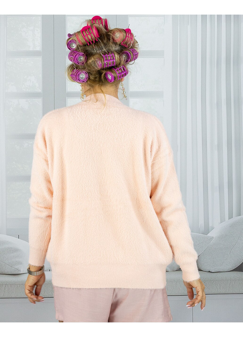 Cardigan dama scurt – croi lejer, fermoar auriu, maneci lungi si buzunare, din material pufos si calduros Roz L/XL