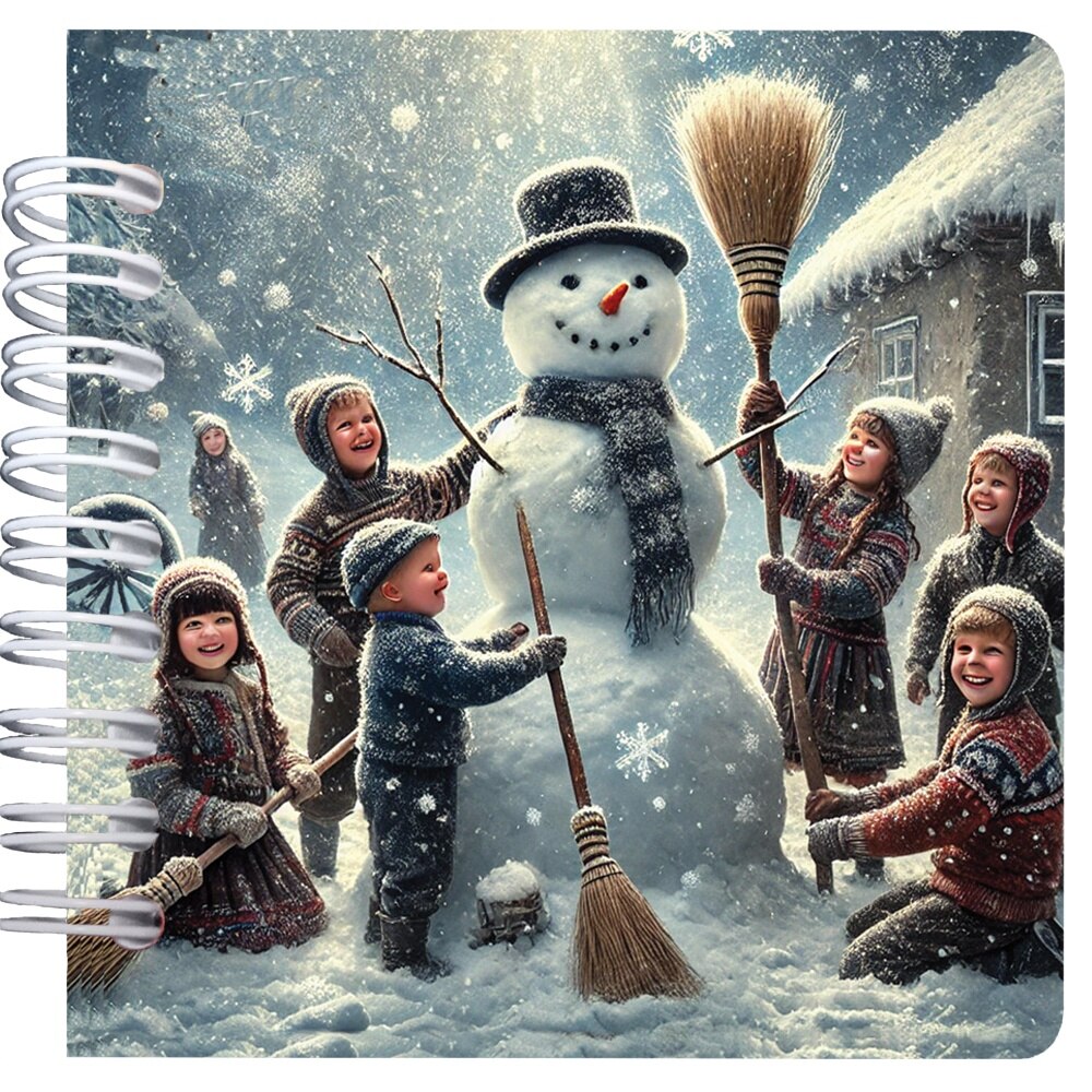 Carnet patrat cu spira 9, 5 x 9.5 cm, 75 foi veline, Om de zapada cu matura