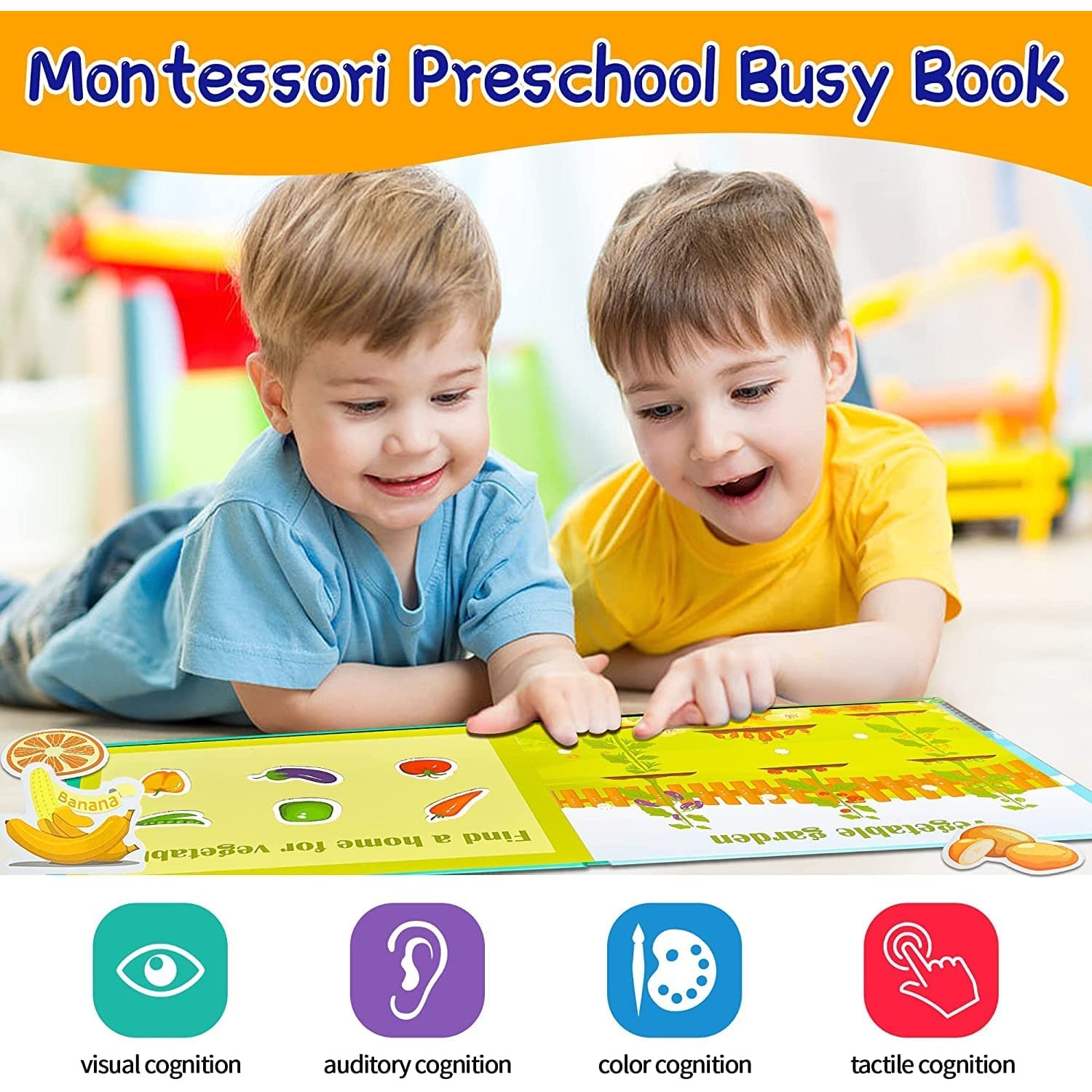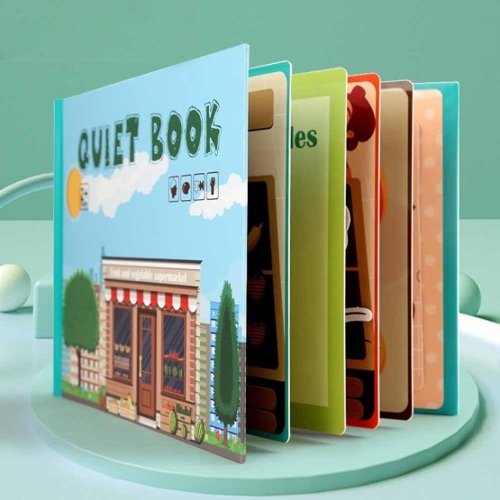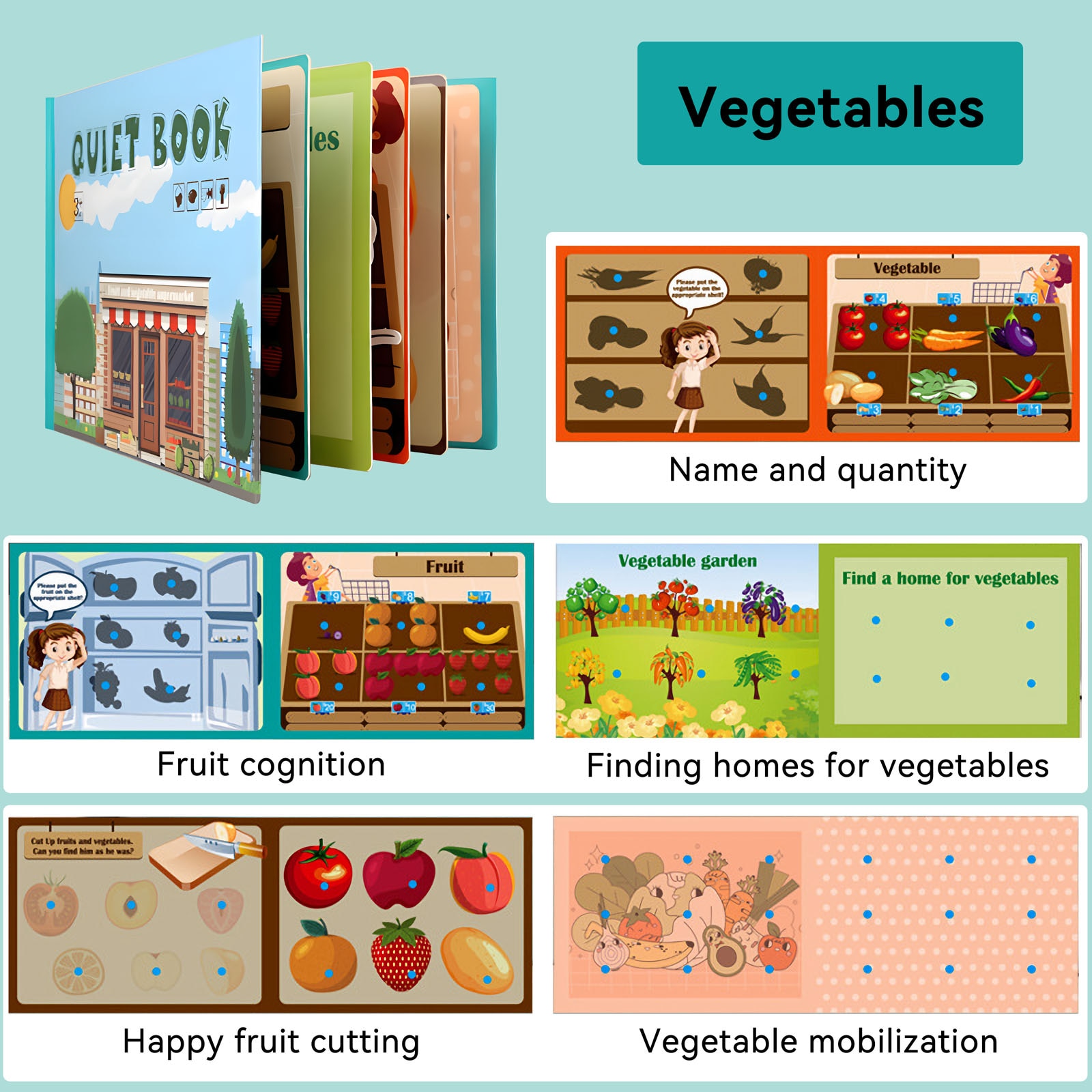 Carte educativa cu stickere reutilizabile Quiet Book - Fructe si Legume, 10 pagini, Toyska®