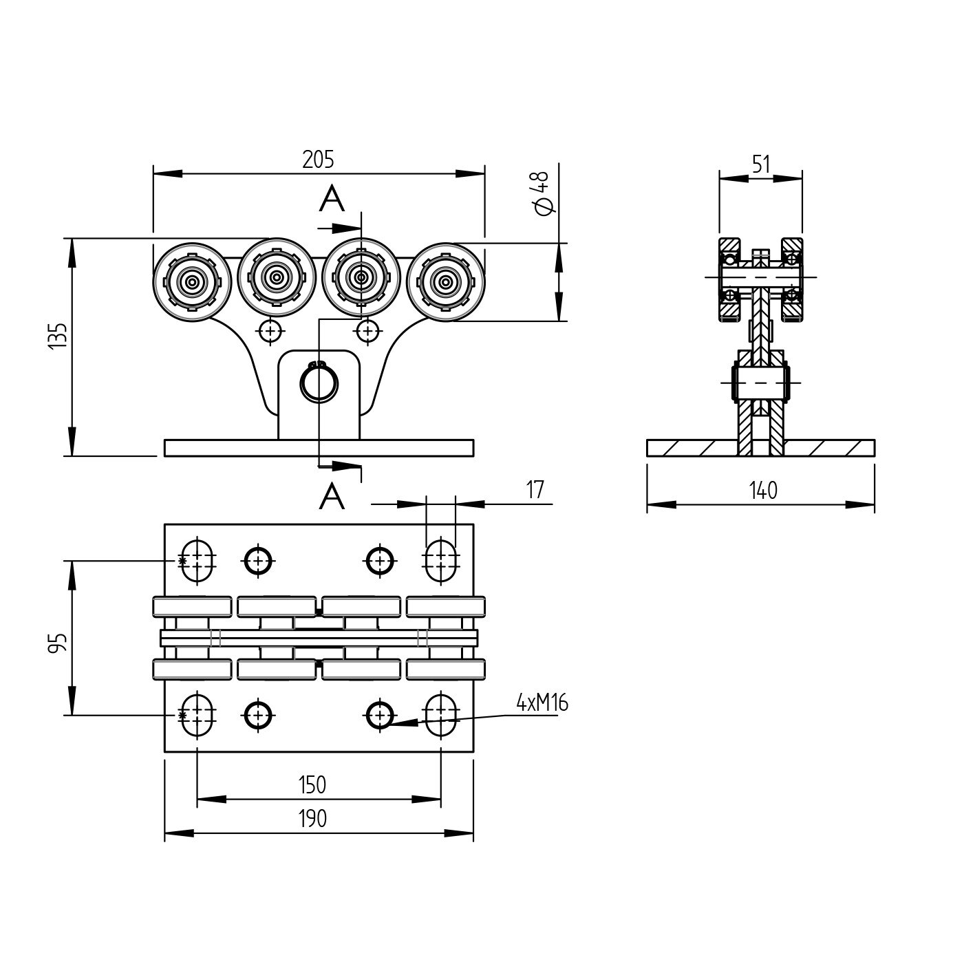 Carucior cu 8 role pentru poarta 70X60 Otel zincat