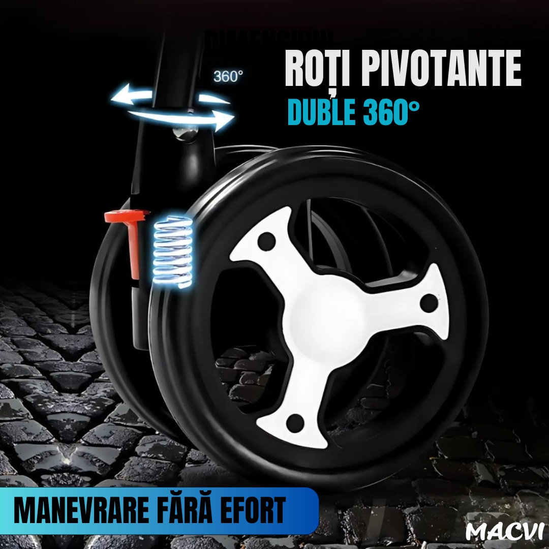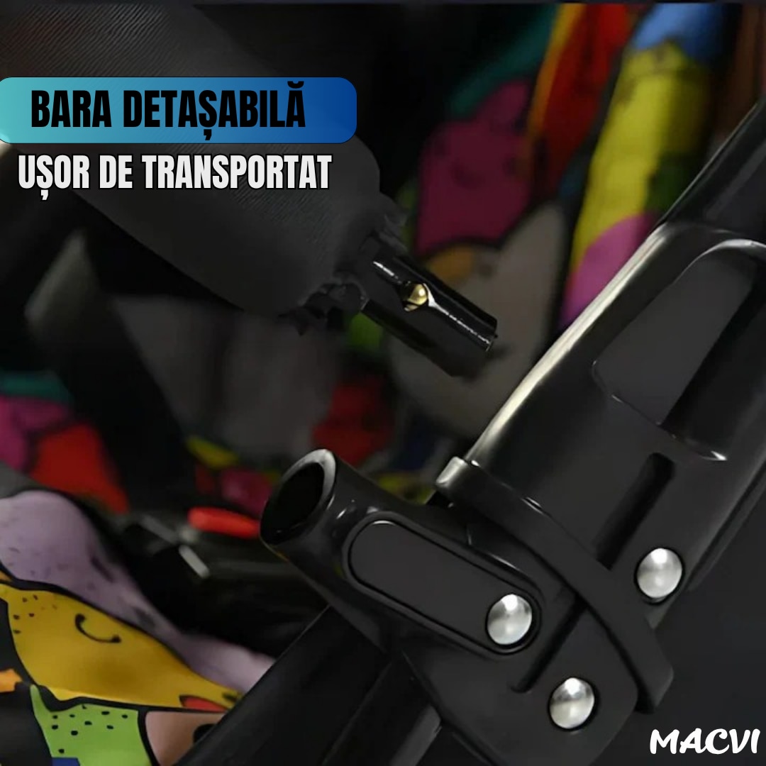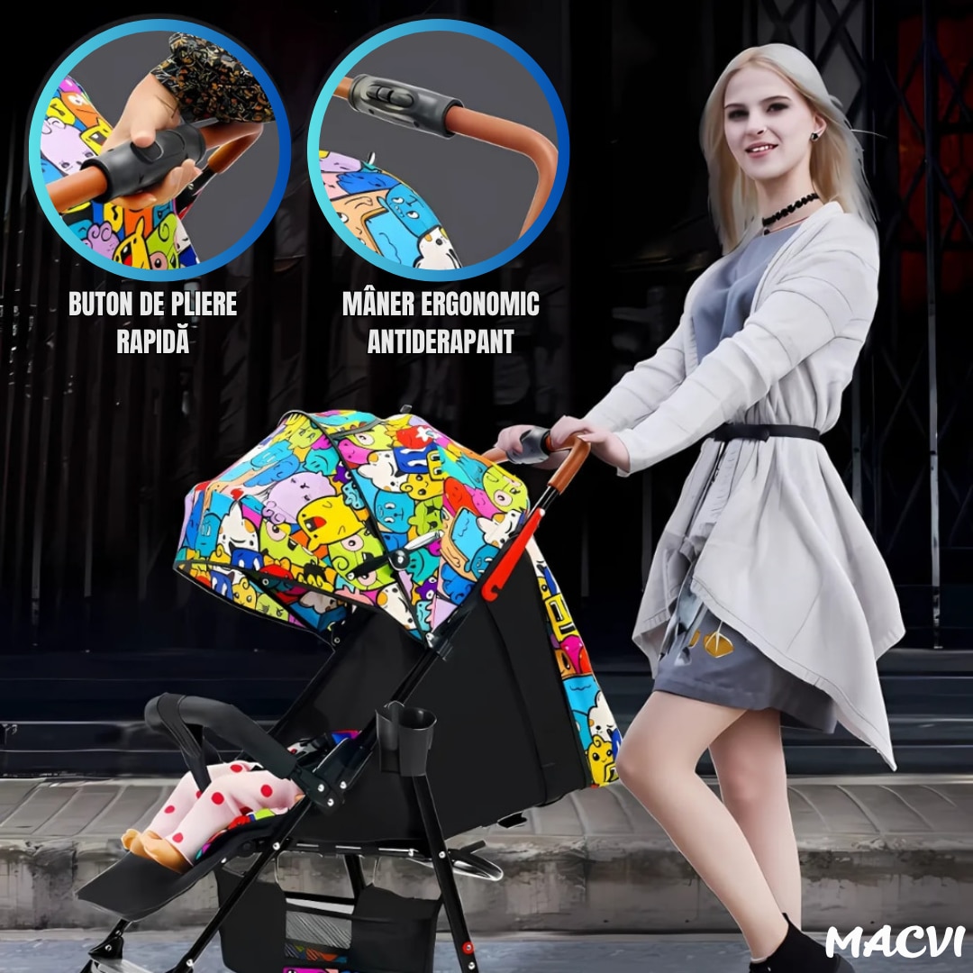 Carucior sport usor Macvi® multicolor pliere rapida copertina UV roti pivotante centura 3 puncte, sistem de franare cu pedala