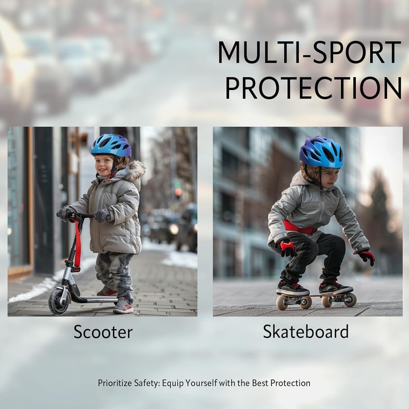 Casca de protectie pentru copii, Casca usoara, Casca in aer liber, respirabila, set de echipamente, reglabil, Echipament de siguranta pentru ciclism Skateboarding Scooter, pentru varste 5-14 ani, albastru si violet