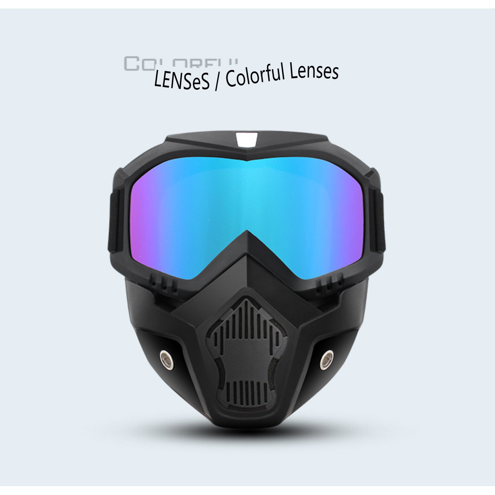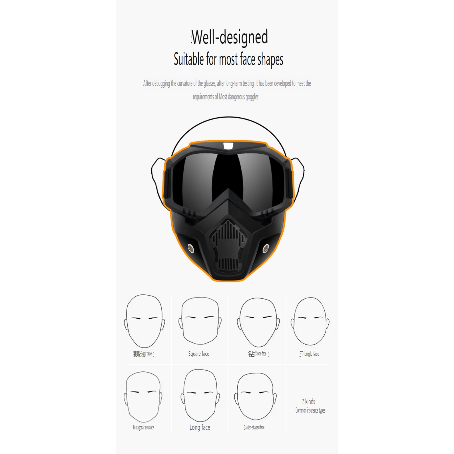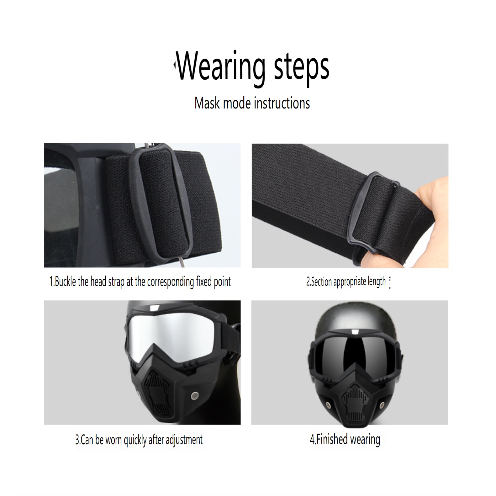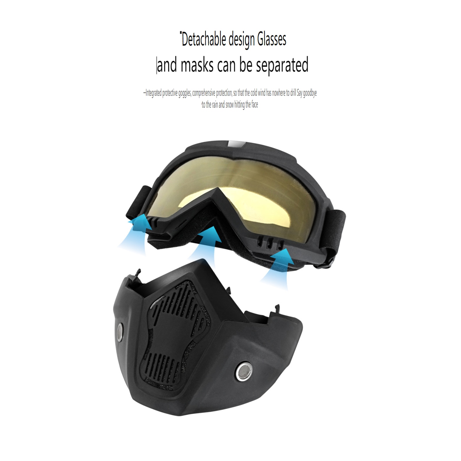 Casca moto cu ochelari, metal negru, 11, pentru protectie la vant si UV, detasabil