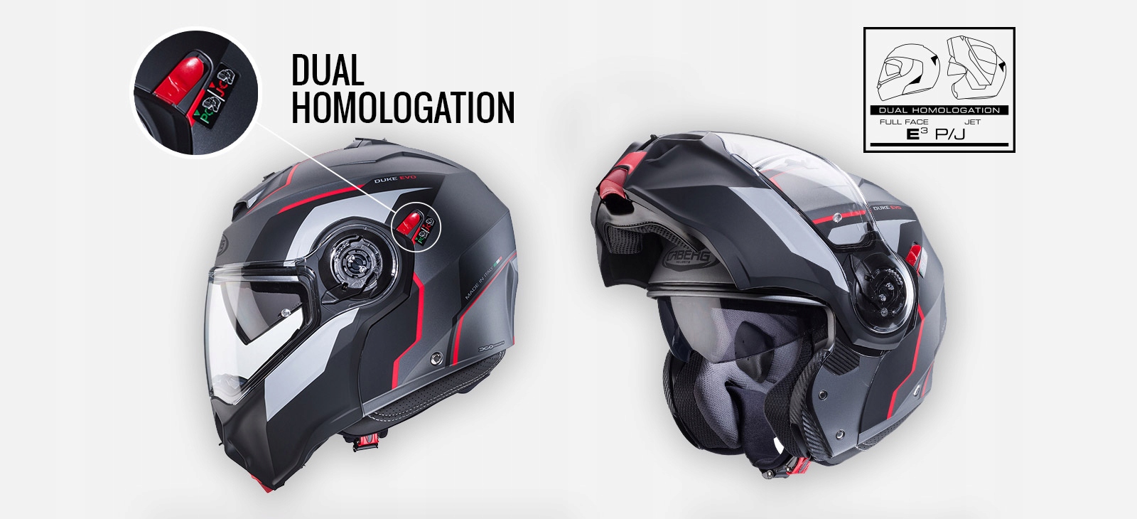 DUKE EVO îndeplinește standardele de siguranță ale Uniunii Europene ECE 22.06 și cu sistemul Caberg Pro Speak EVO instalat.