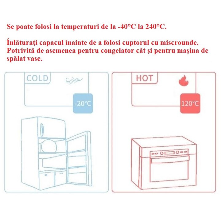 | Instructiuni utilizare | Compatibil masina de spalat vase Compatibil congelator Compatibil cuptor cu microunde |