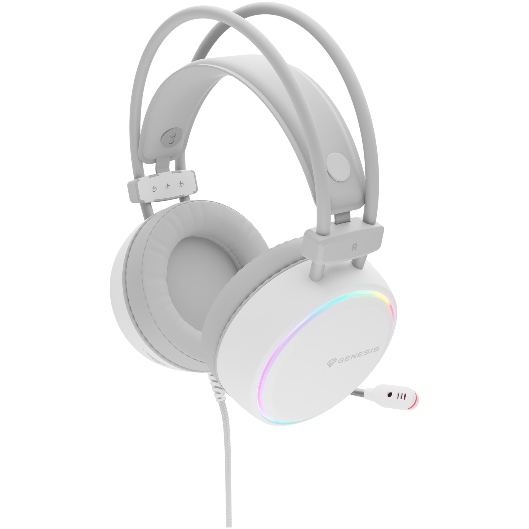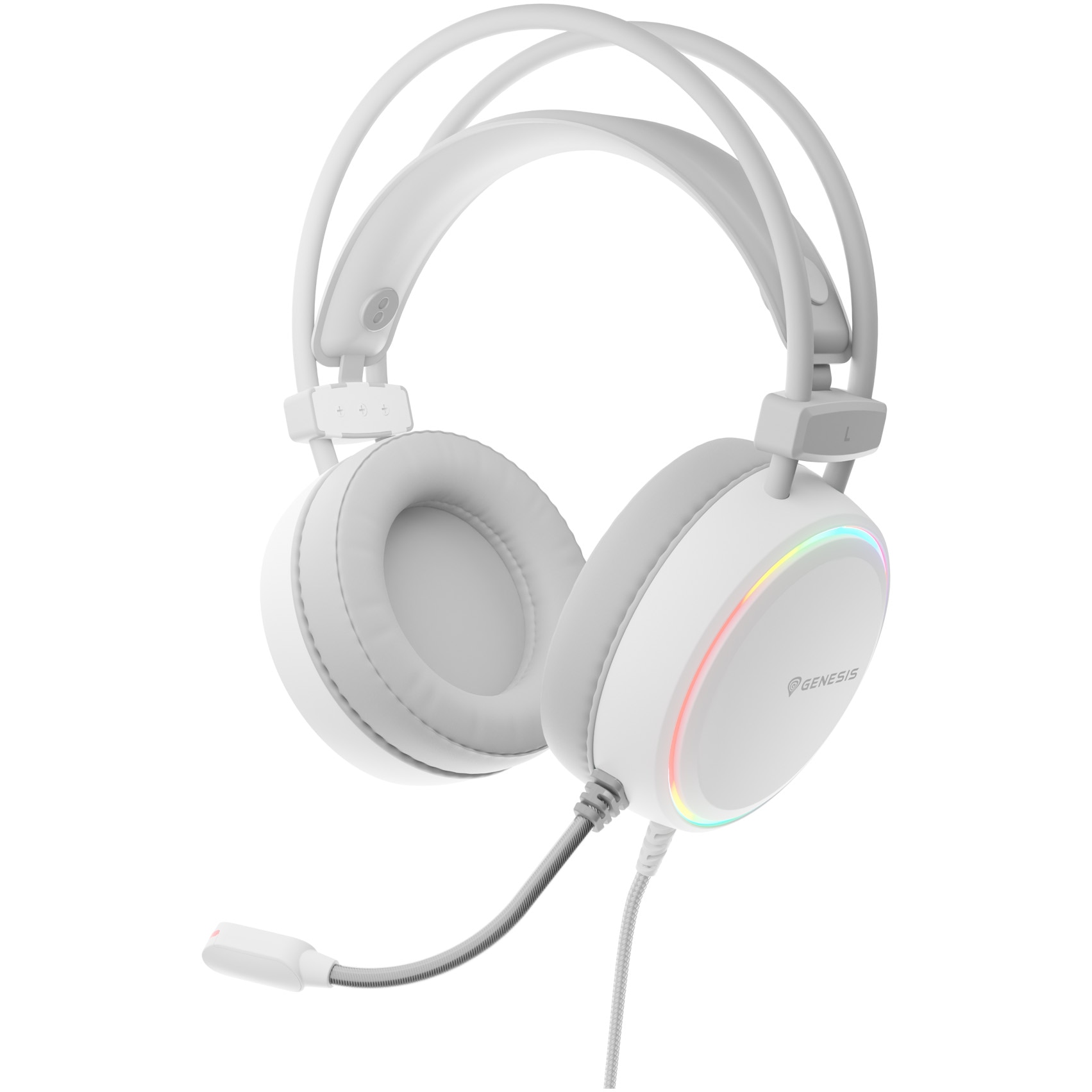 Casti Gaming Genesis NEON 613, Over-Ear, Stereo, 50mm Driver, Microfon Omnidirectional, Control Volum pe Casca si Mute pe Fir, Cablu 2m, Compatibil PC prin 1 x jack 3,5mm + USB pentru Iluminare LED,Alb